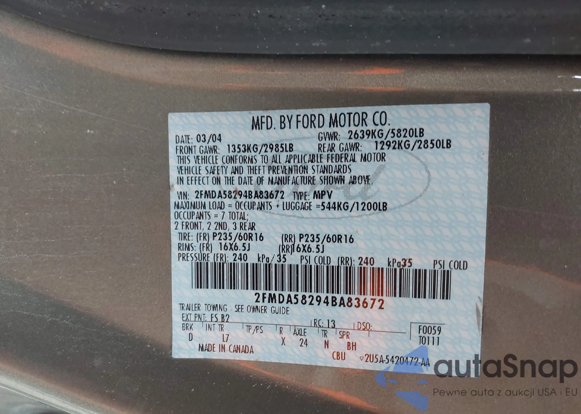• VIN 2FMDA58294BA83672