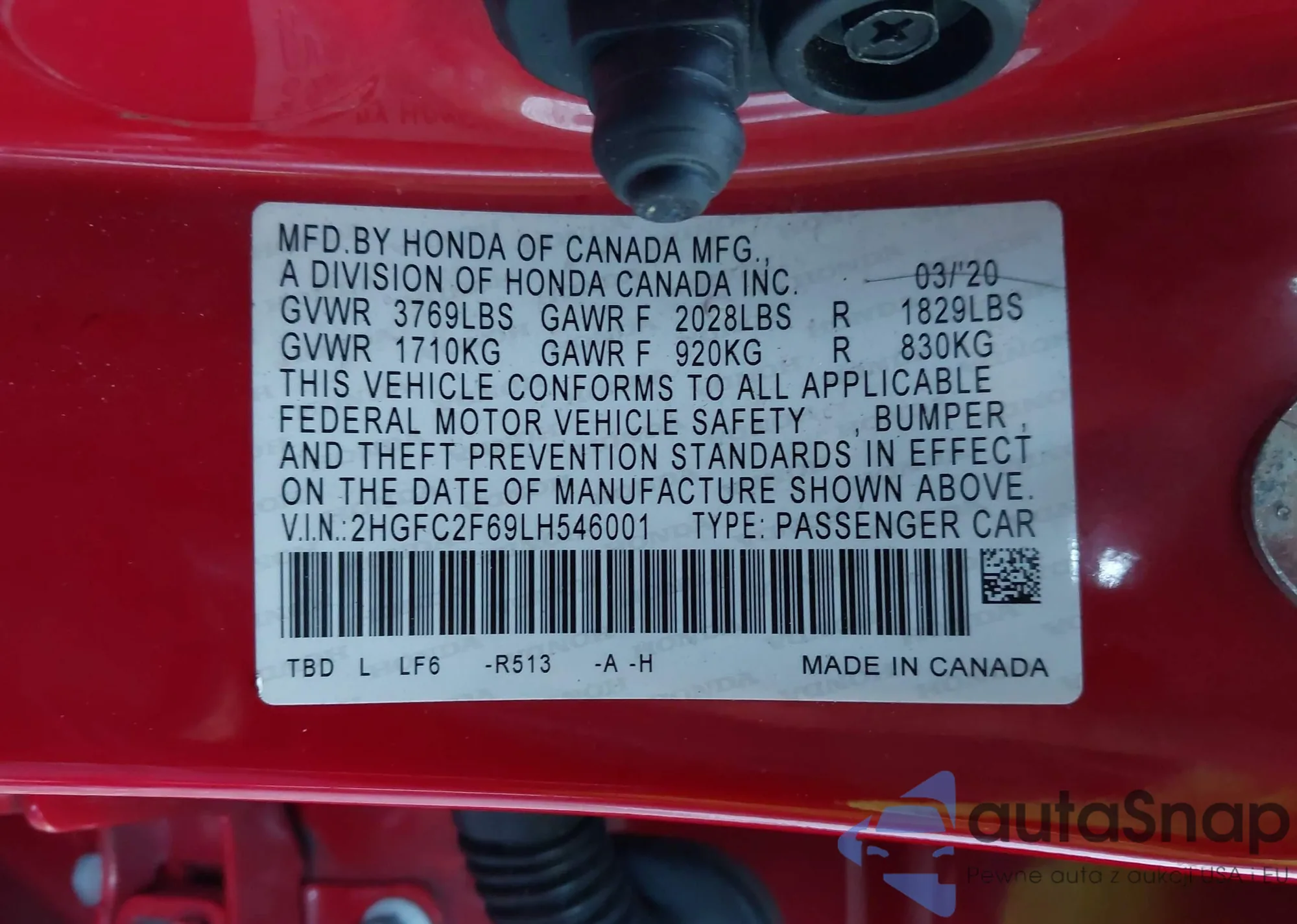 LOT: 44247571 VIN: SHSRD788X2U002818