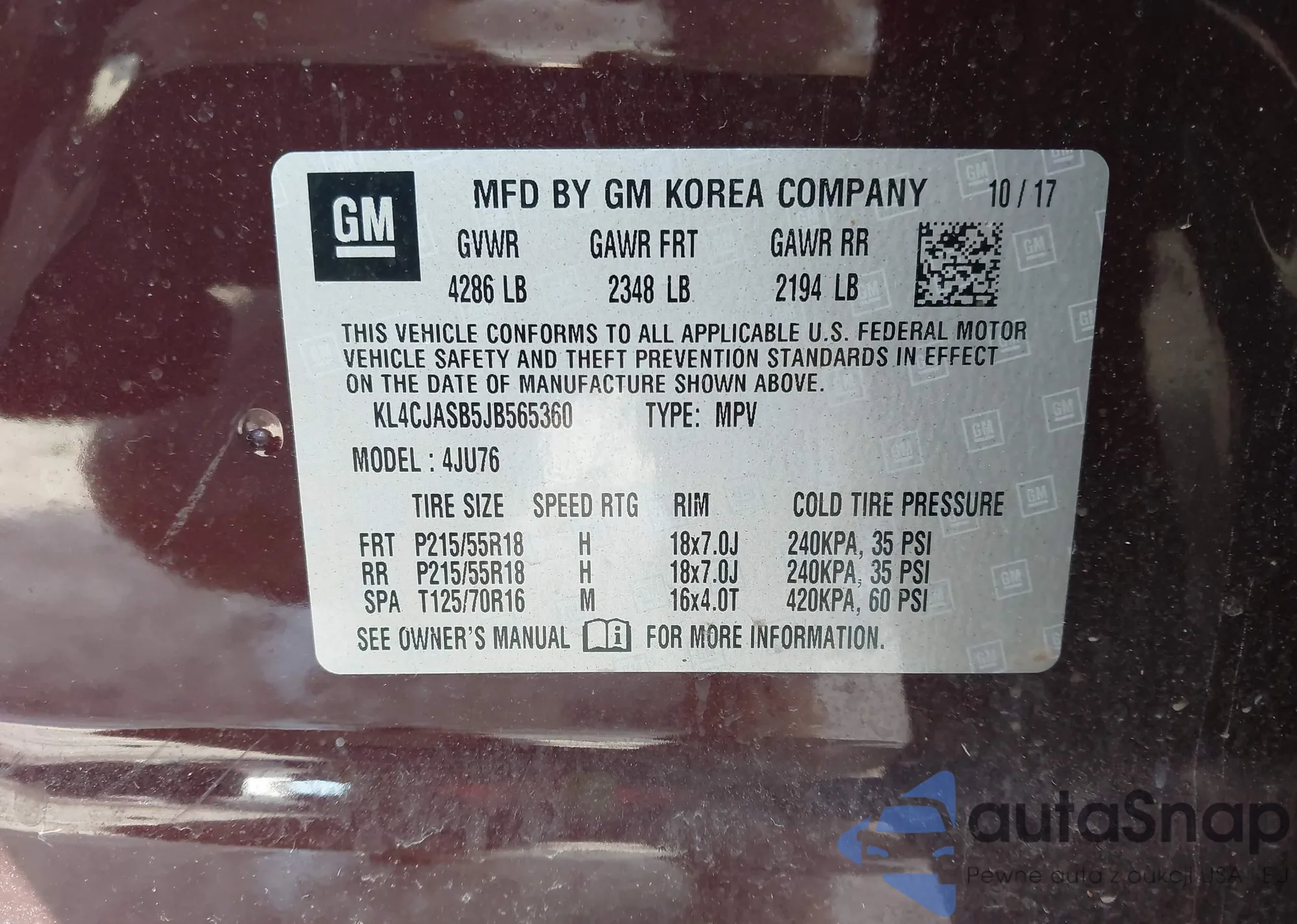 • VIN KL4CJFSB2FB066536