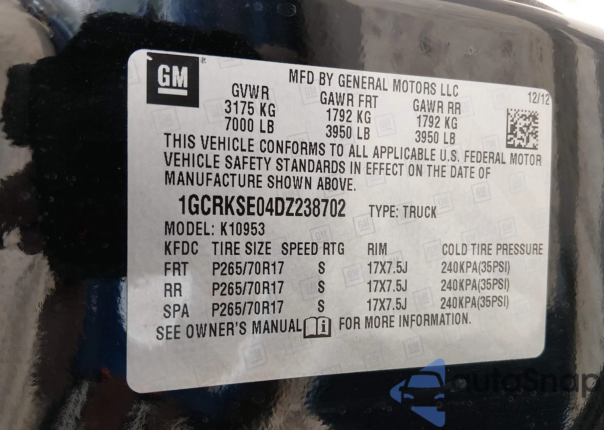 • VIN 1GCRKSE04DZ238702