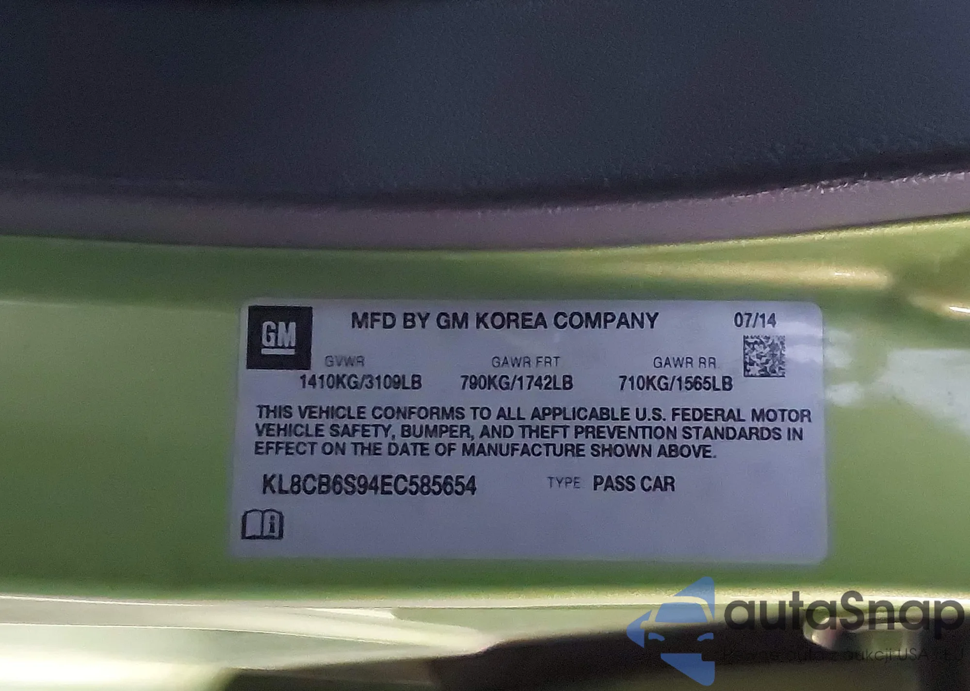• VIN KL8CB6S94EC585654