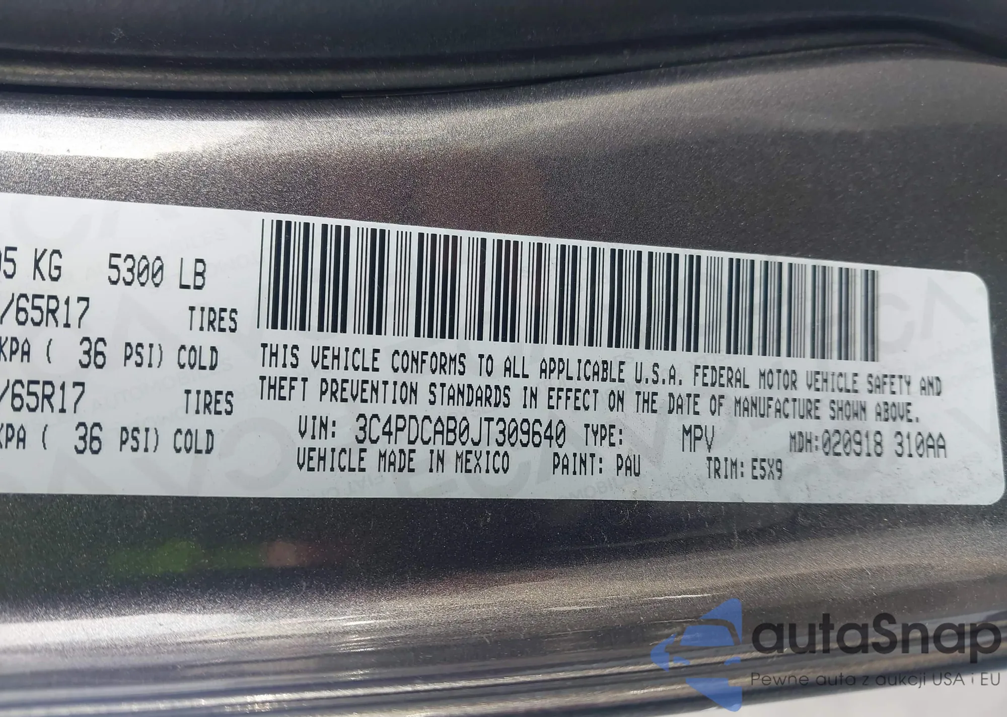 LOT: 43915747 VIN: 3C4PDCAB0JT309640
