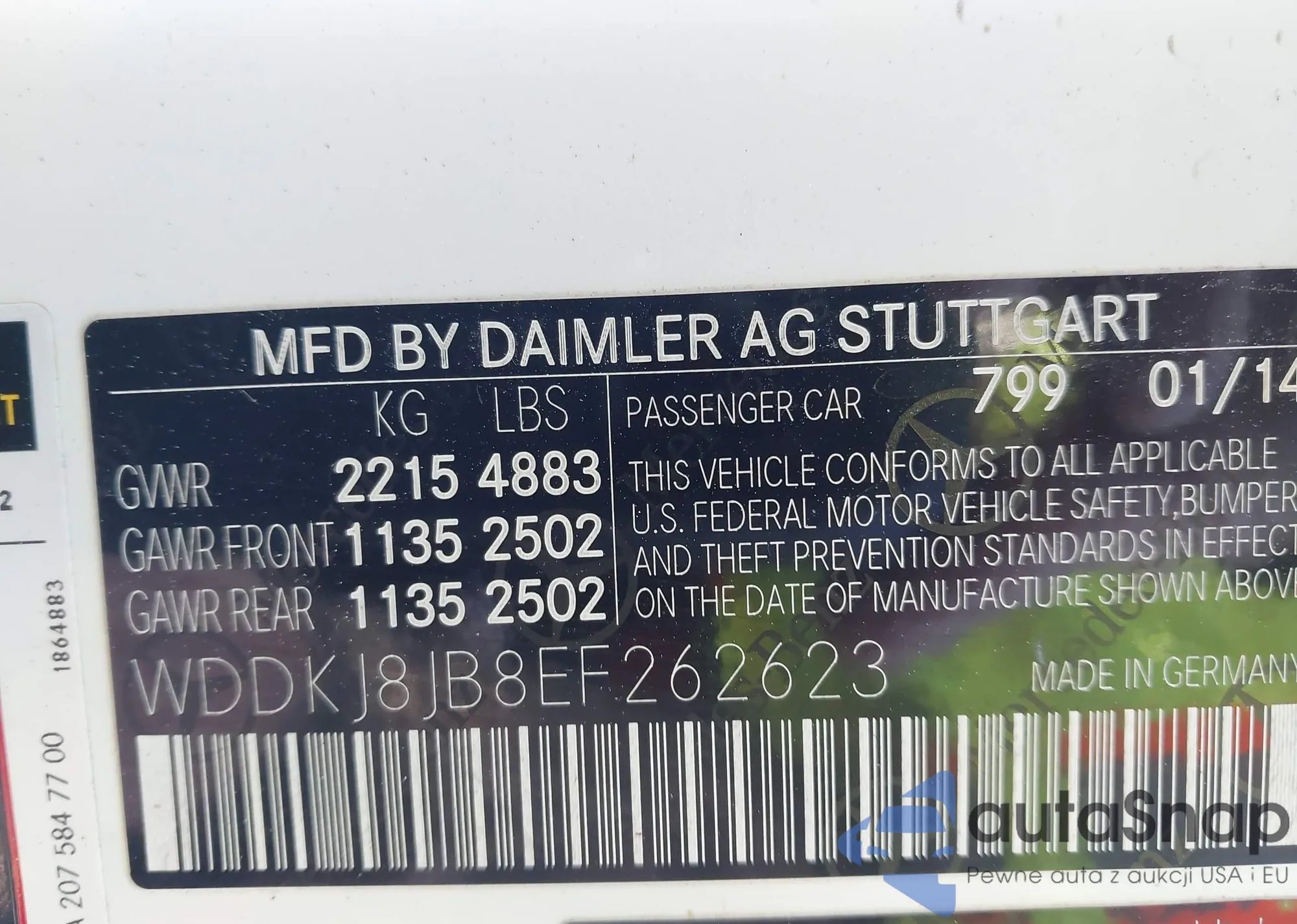 • VIN WDDKJ8JB8EF262623