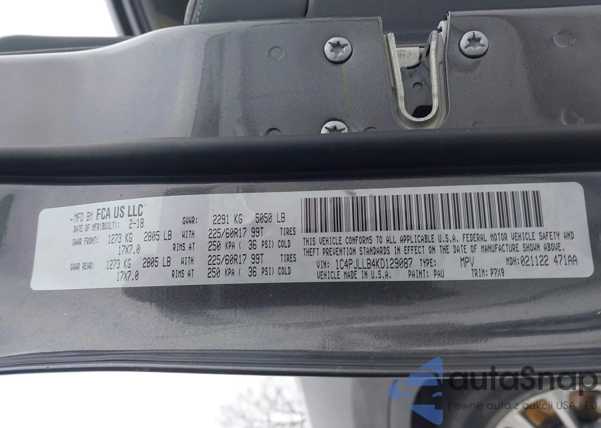 • VIN 1C4PJLLB4KD129087
