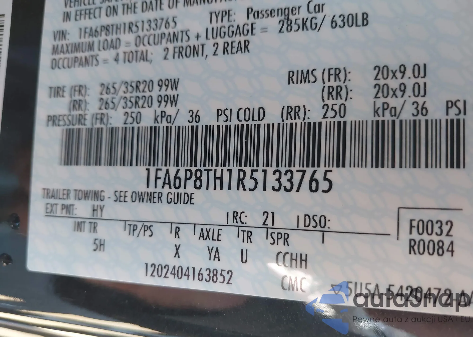 • VIN 1FA6P8TH1R5133765