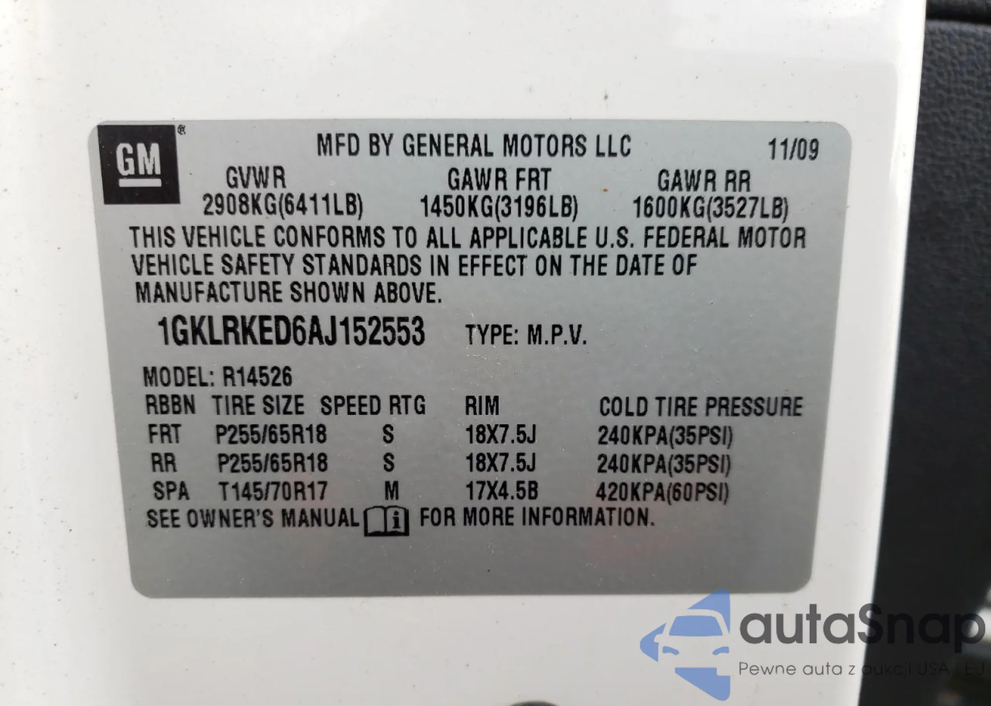 • VIN 1GKLRKED6AJ152553