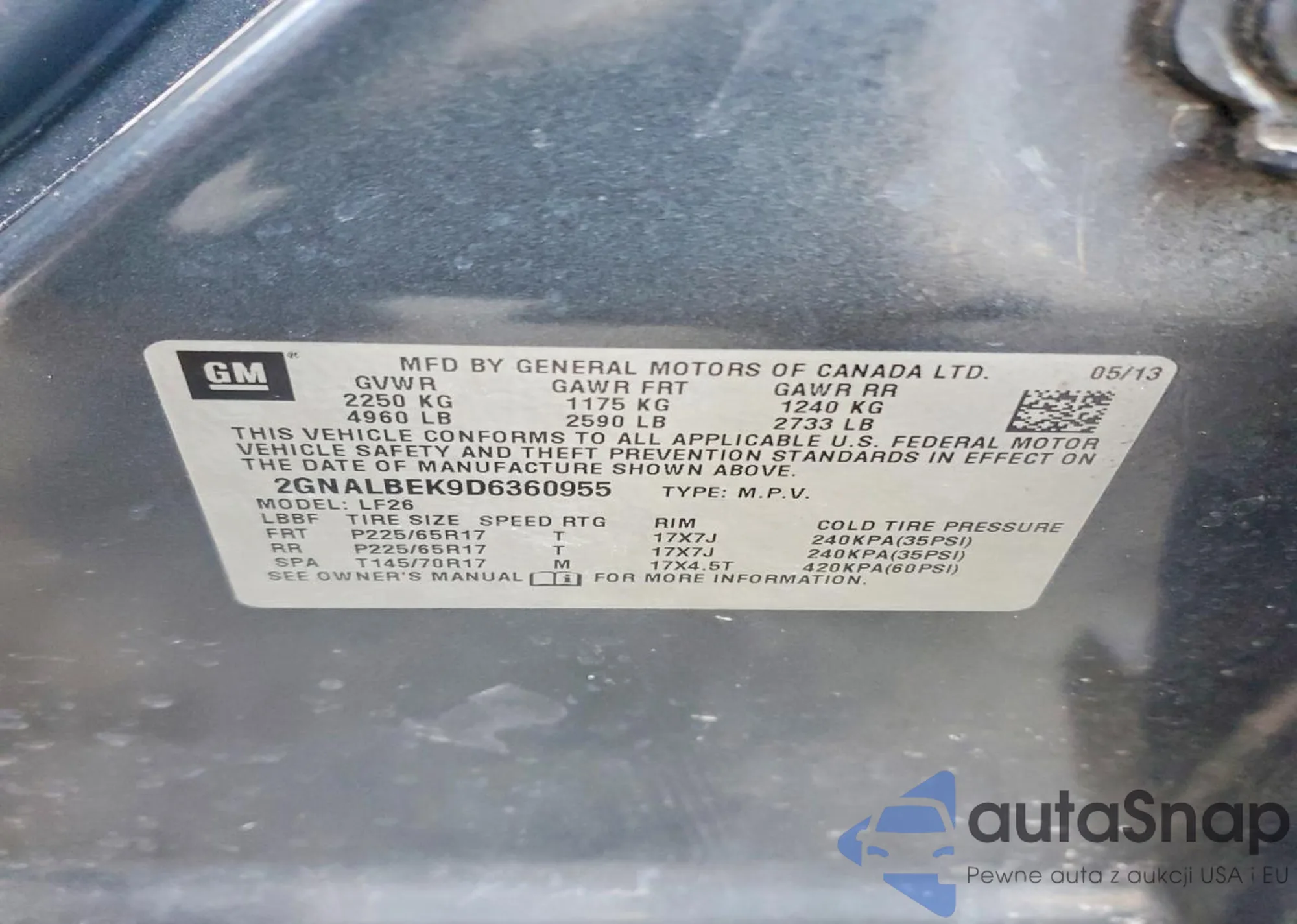 • VIN 2GNALBEK9D6360955