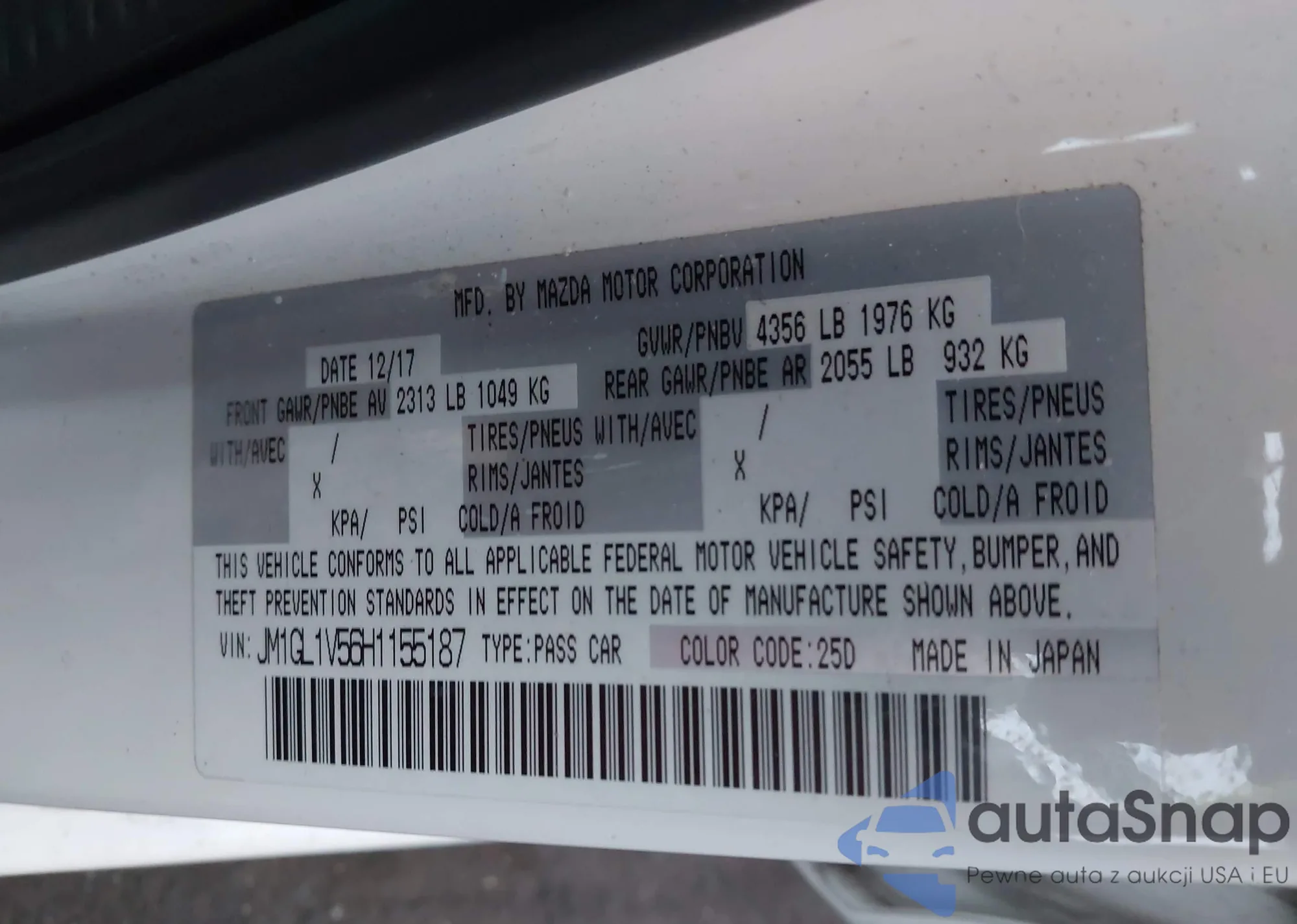 LOT: 43975510 VIN: JM1GL1V56H1155187
