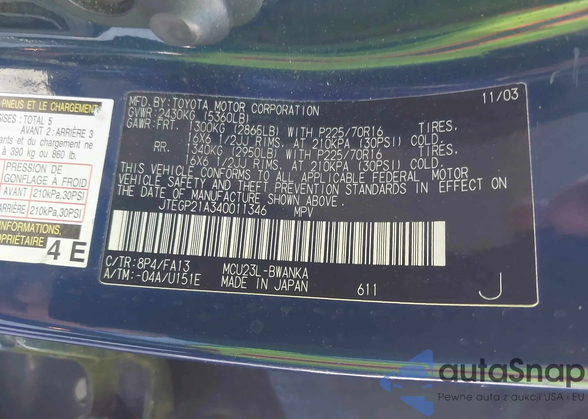 LOT: 44174244 VIN: 5UXTY3C02L9B46369