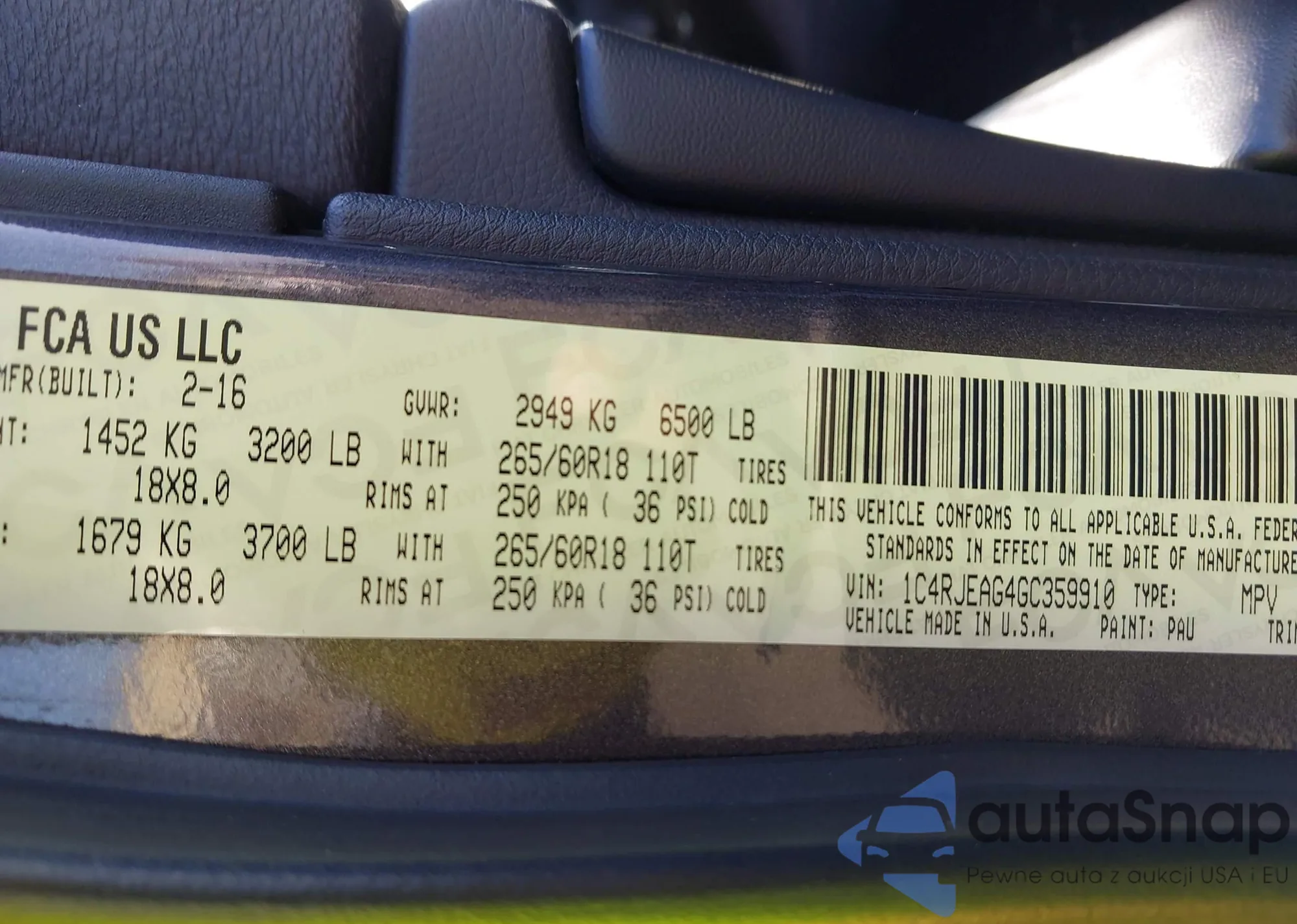 • VIN 1C4RJEAG4GC359910