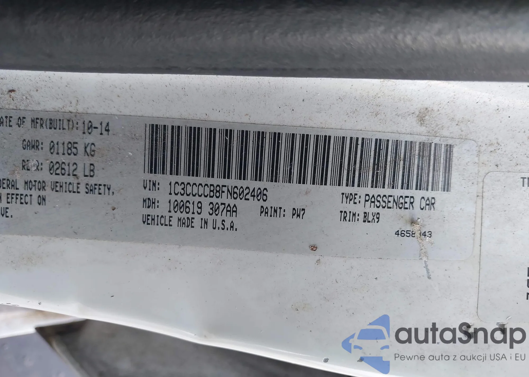 • VIN 1VWAP7A37CC016083