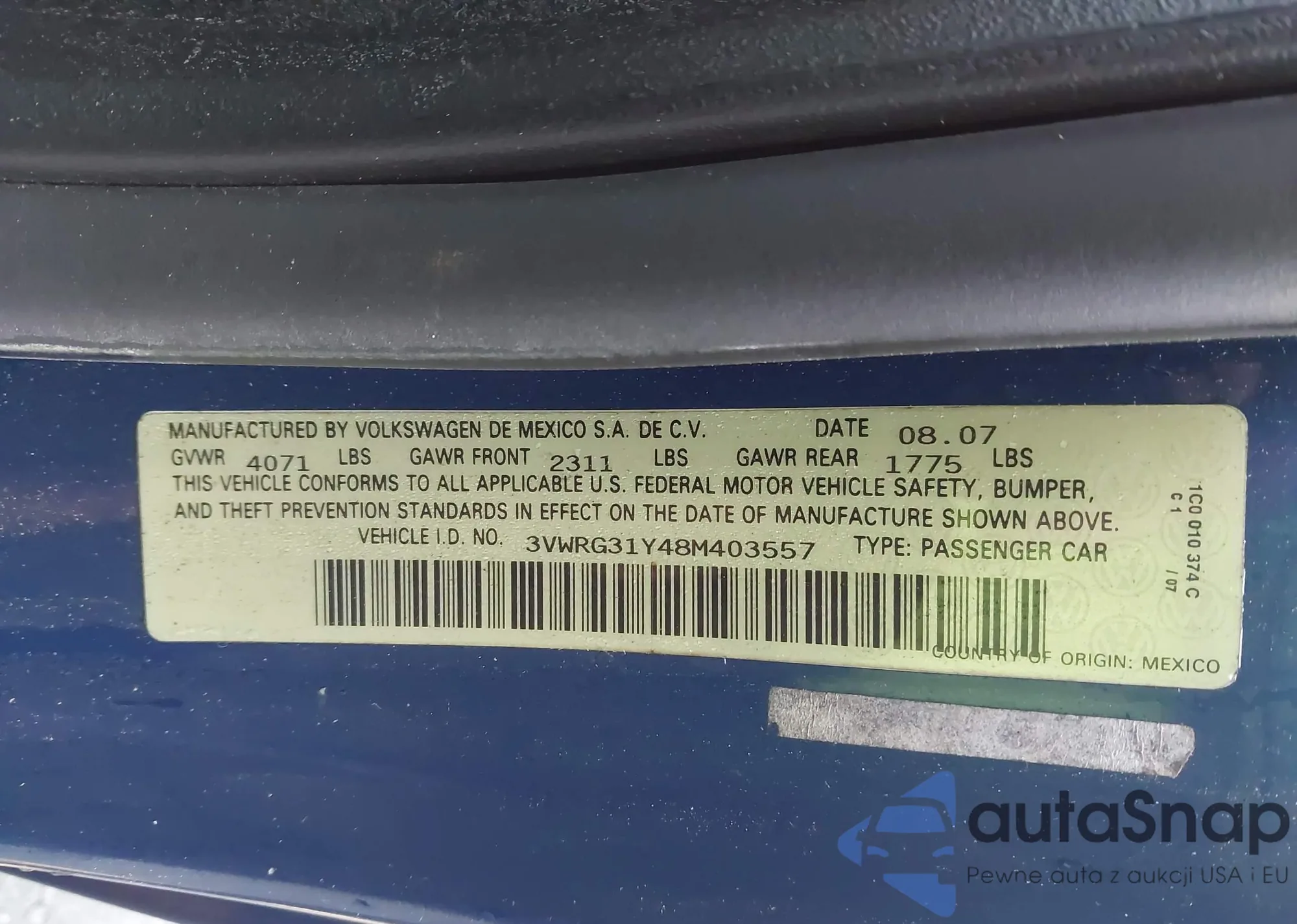 • VIN 3VWRG31Y48M403557