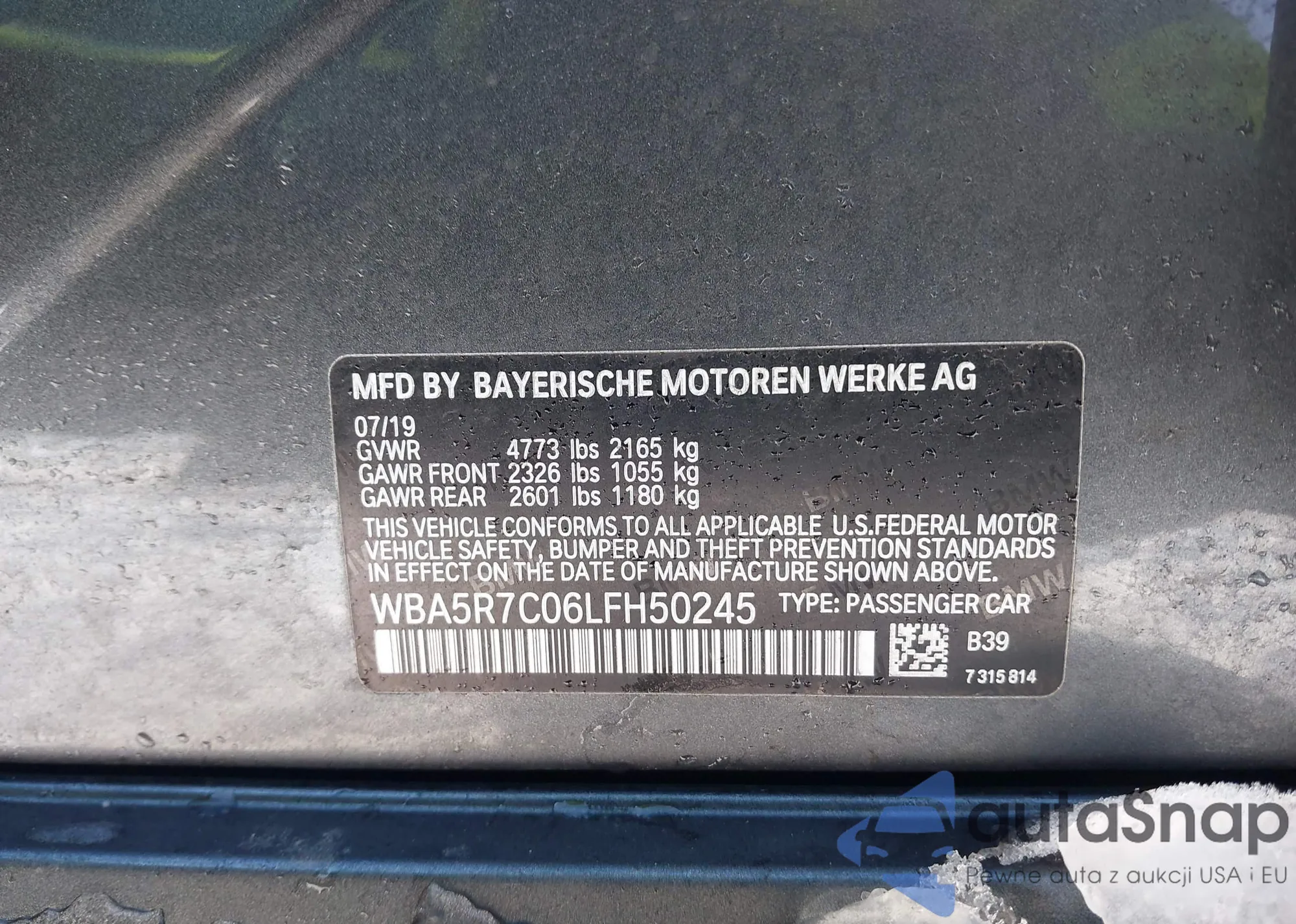 LOT: 43979624 VIN: WBAKB8C59BC851897