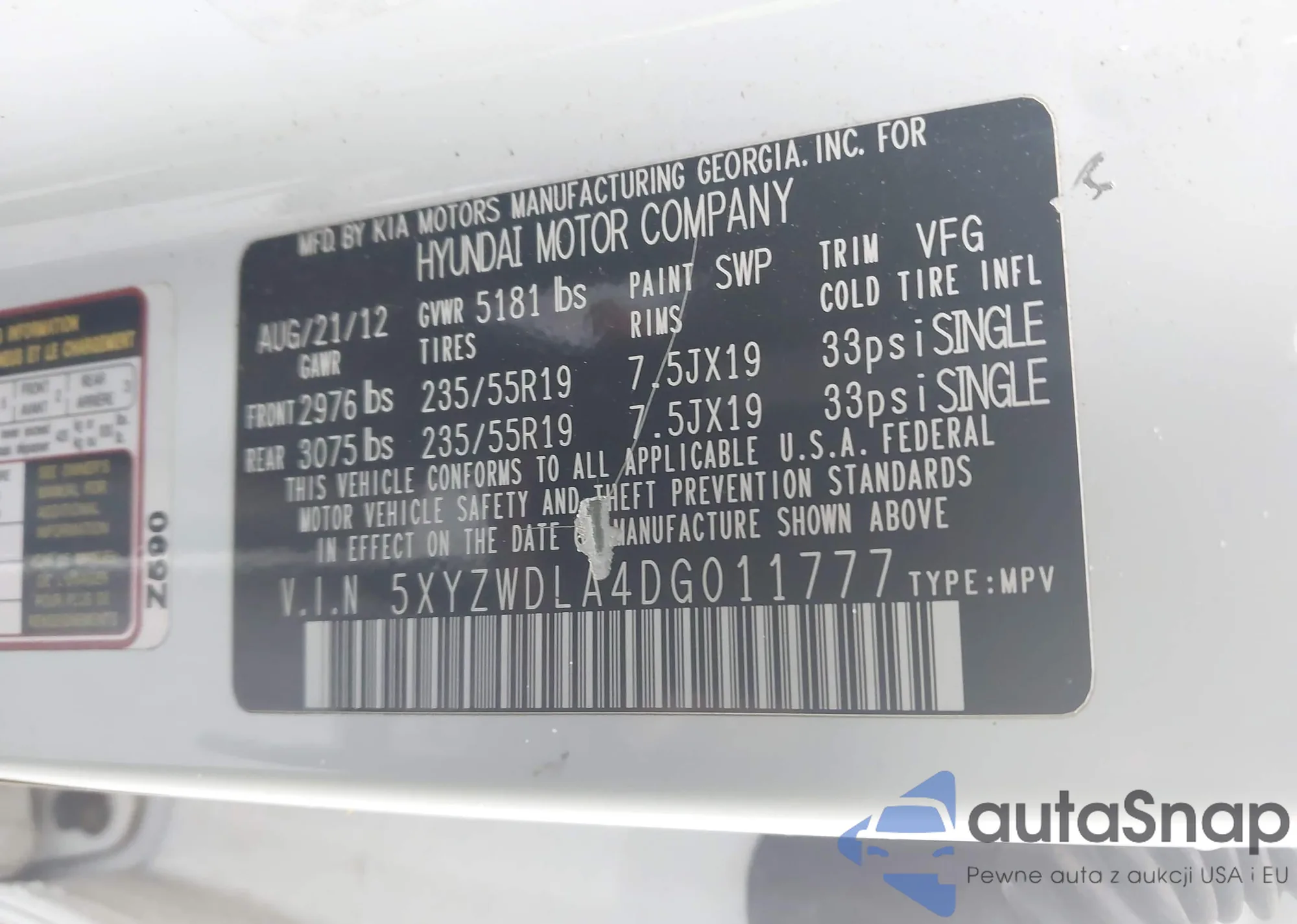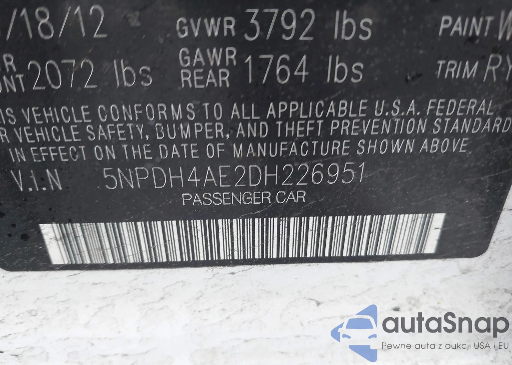 LOT: 44123890 VIN: 5NPDH4AE2DH226951