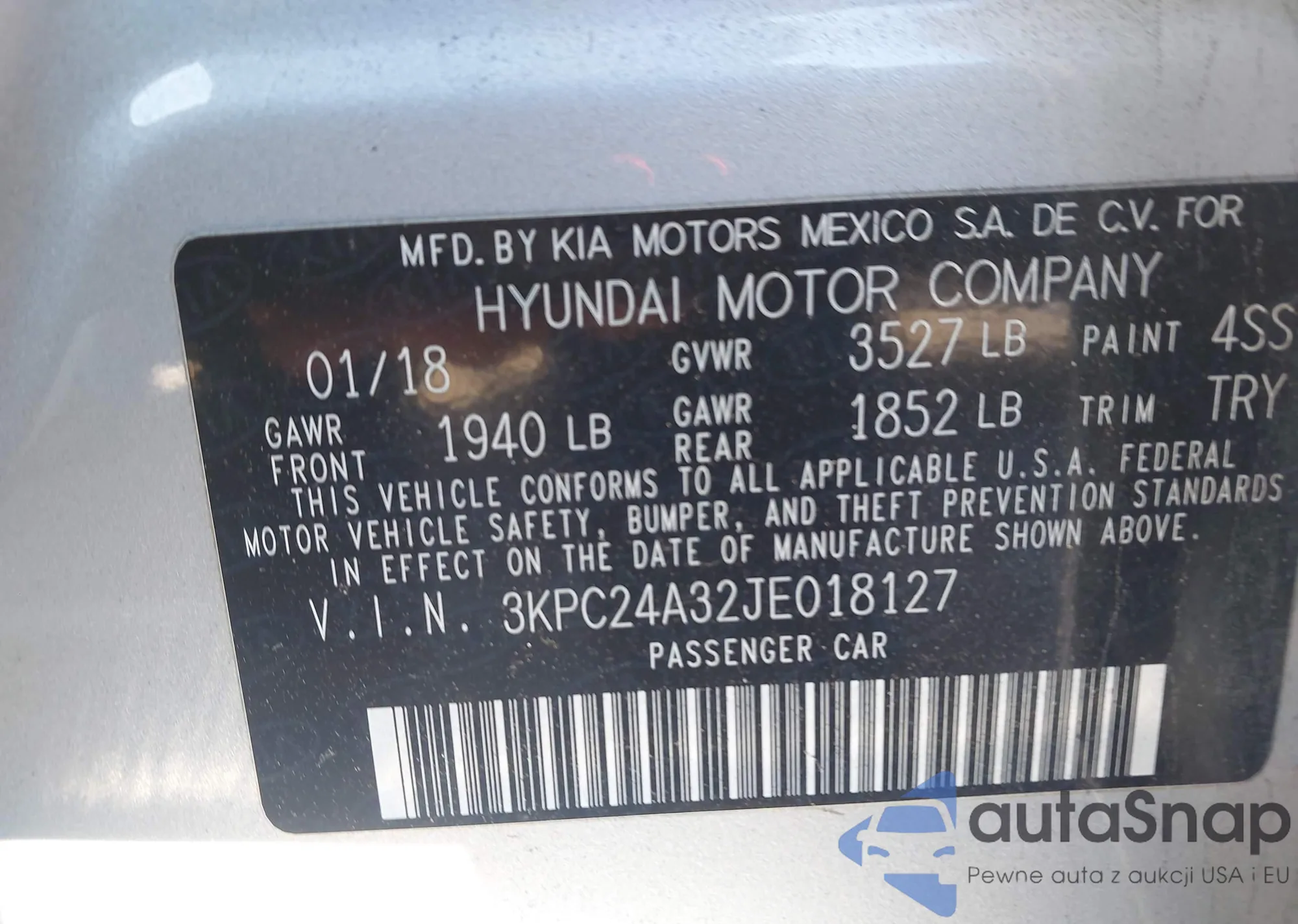• VIN 3KPC24A32JE018127