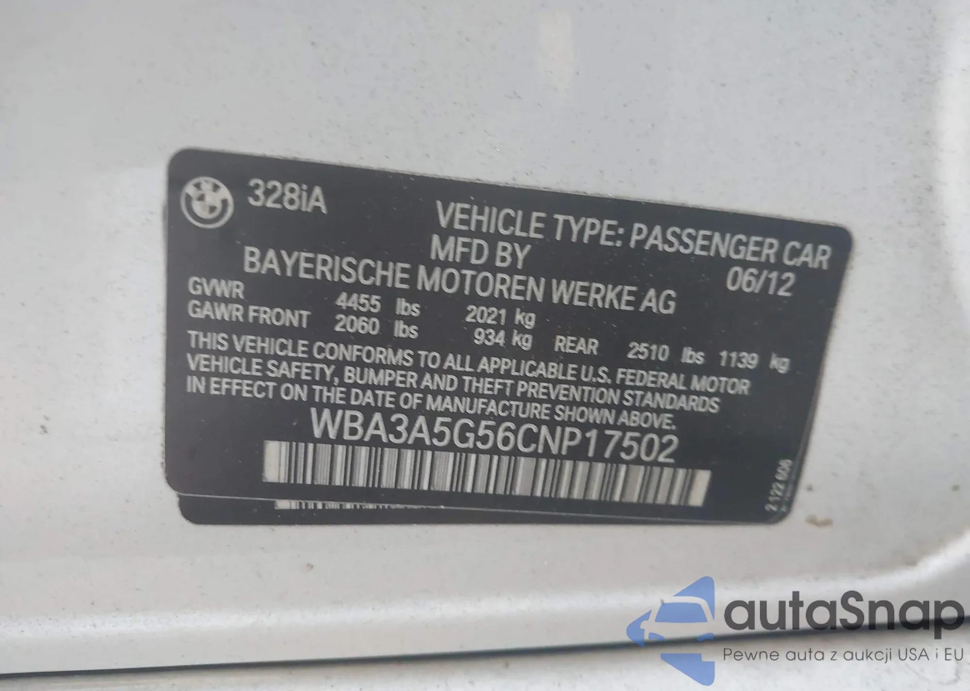 • VIN WBA3A5G56CNP17502