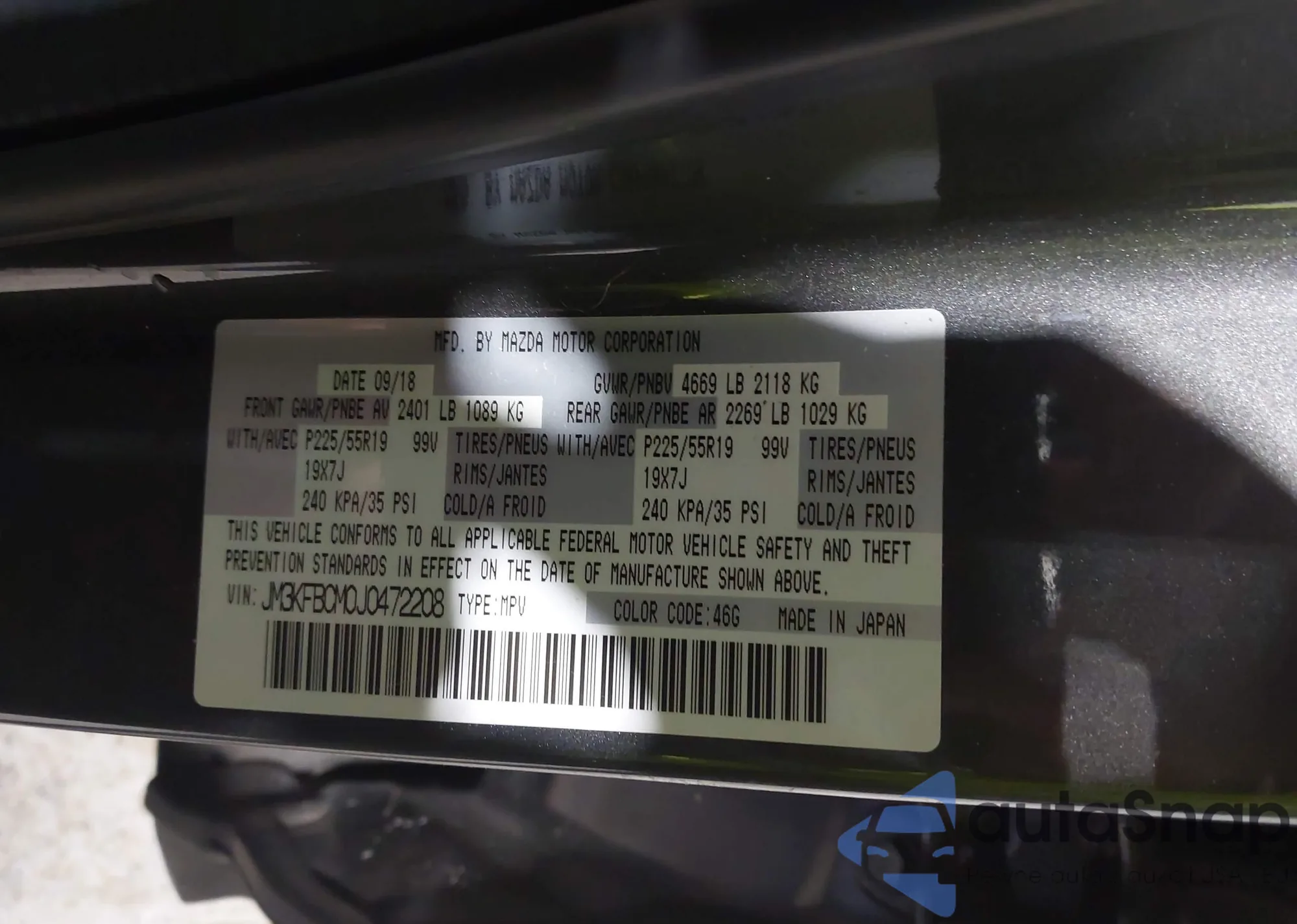 LOT: 43883097 VIN: 1C4HJXDG6JW243892