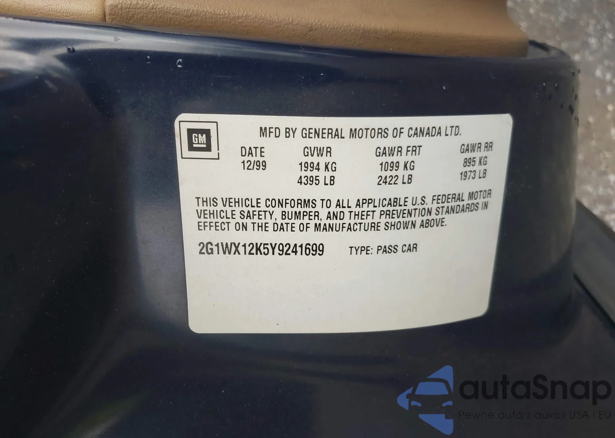 • VIN 2G1WX12K5Y9241699