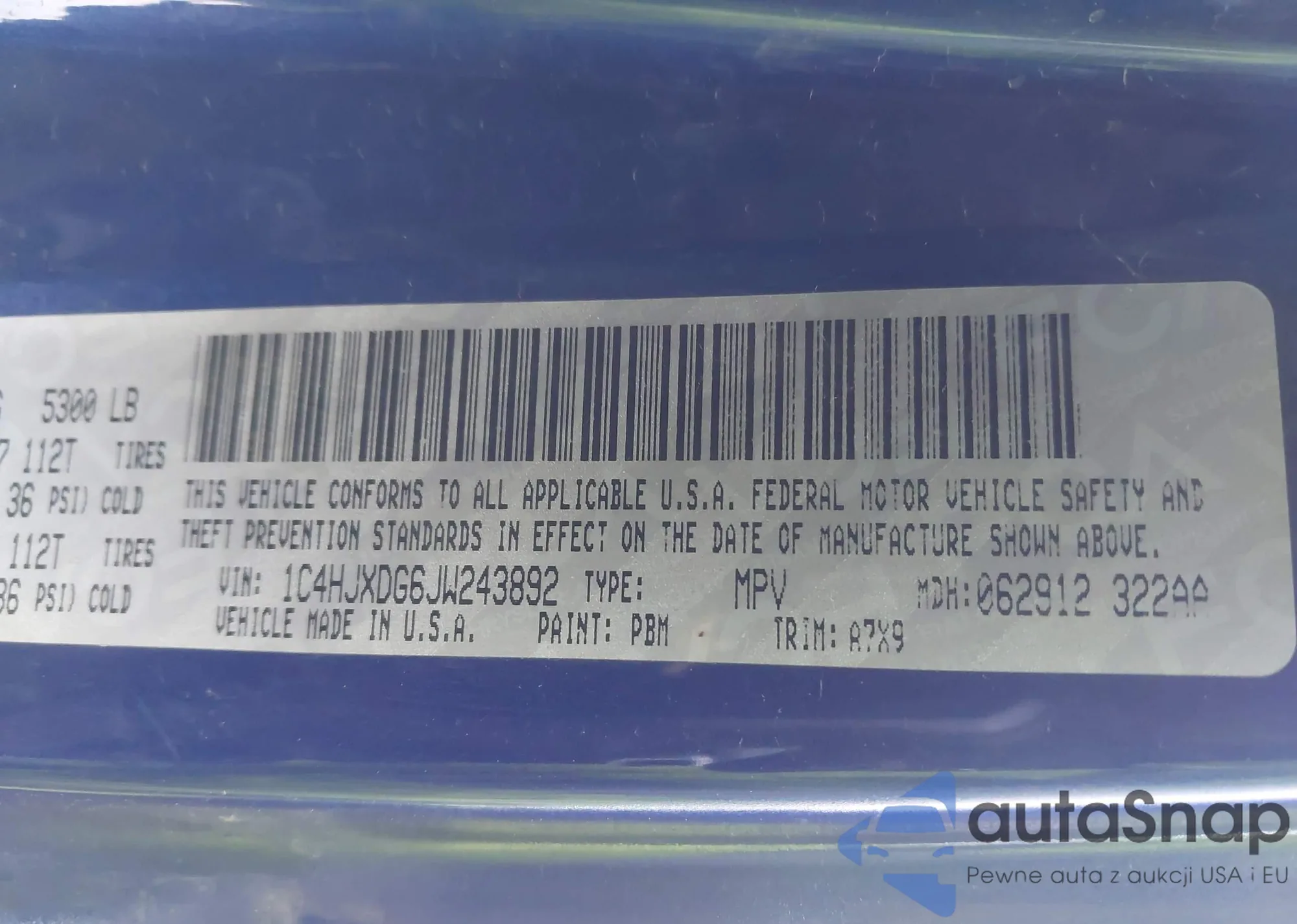 • VIN 1C4HJXDG6JW243892