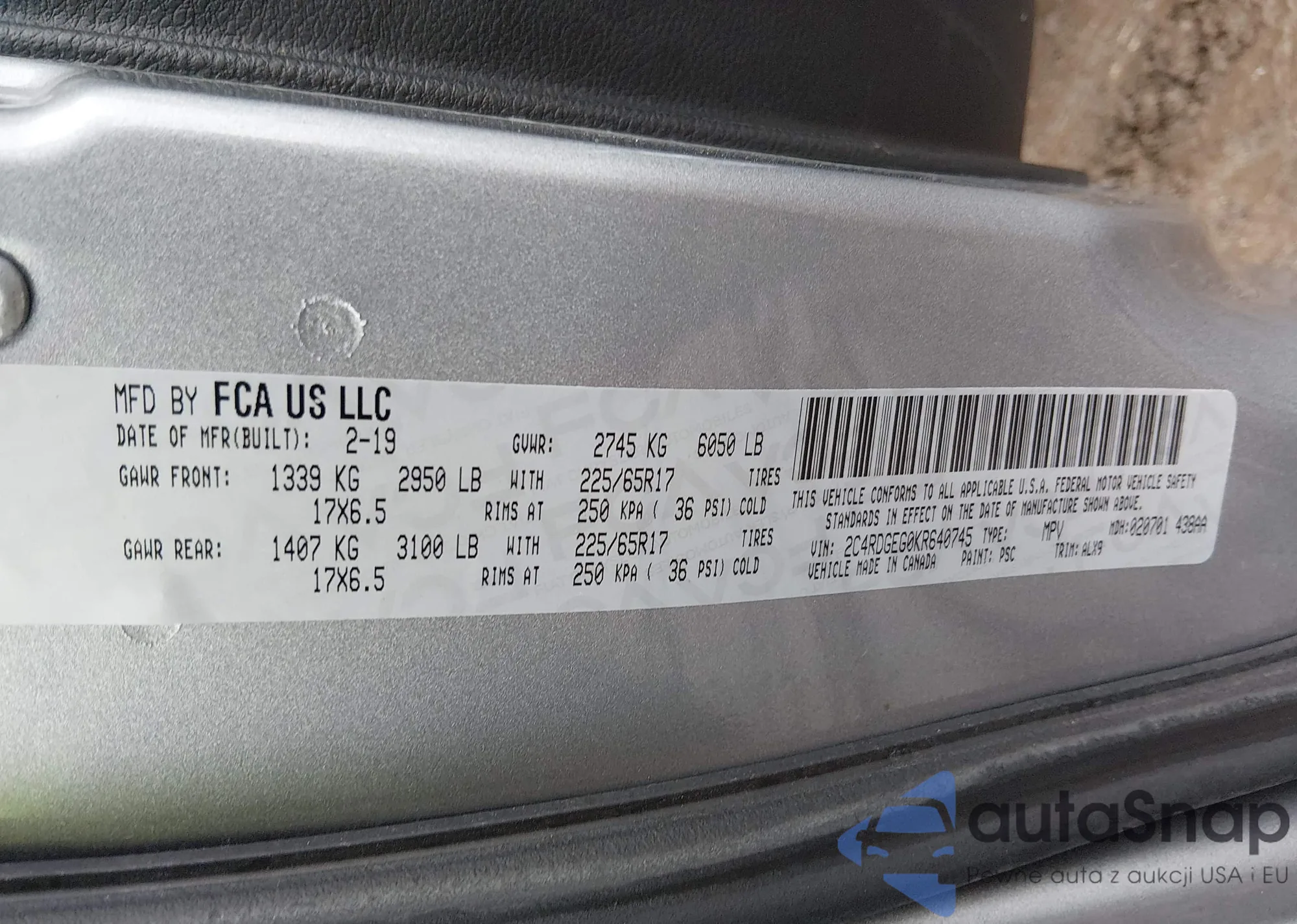 • VIN 2C4RDGEG0KR640745