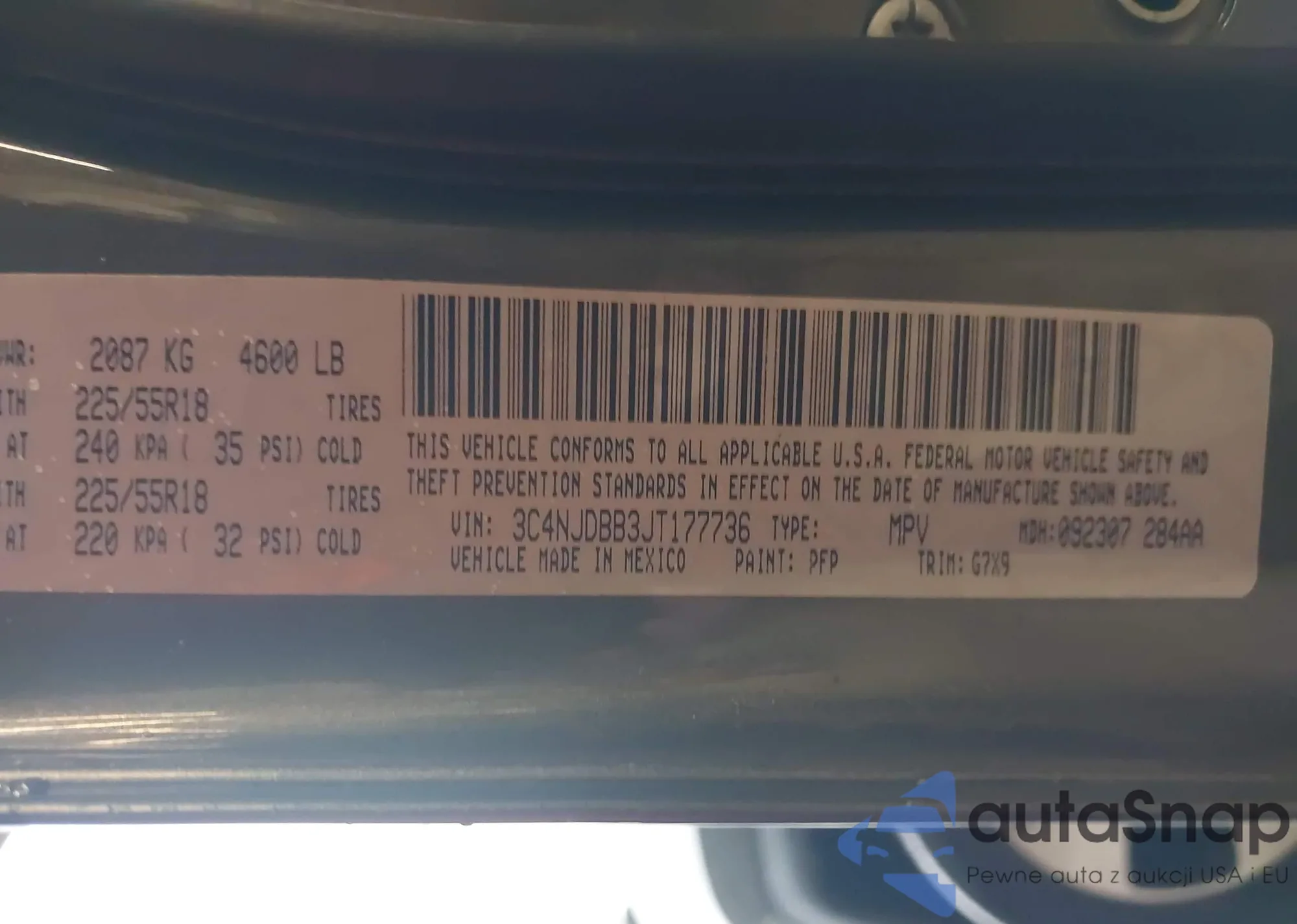 • VIN 3C4NJDBB3JT177736