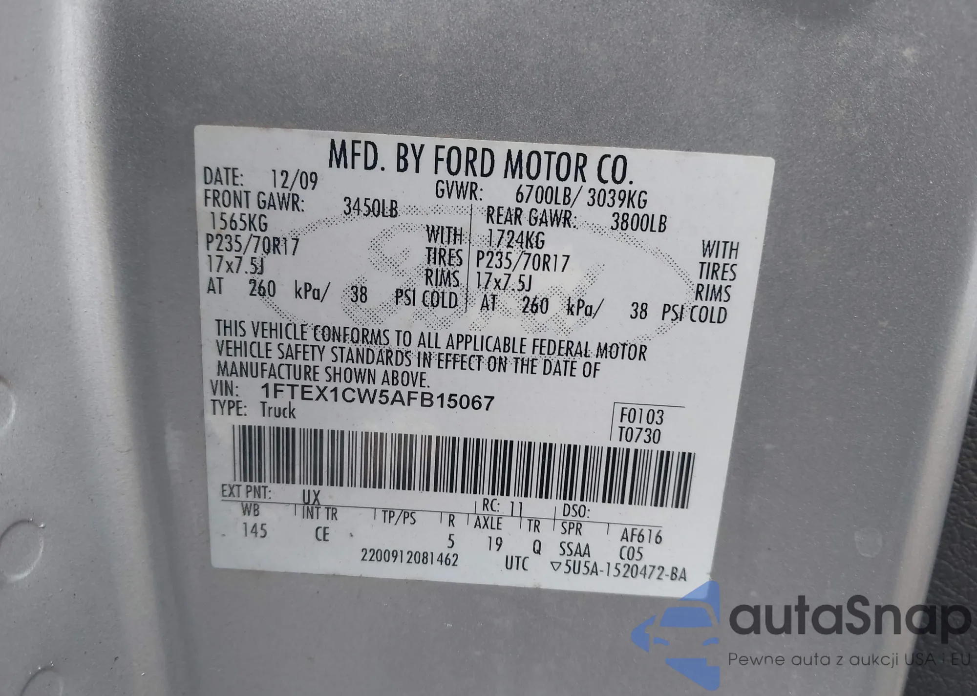 LOT: 44005204 VIN: 1FTEX1CW5AFB15067