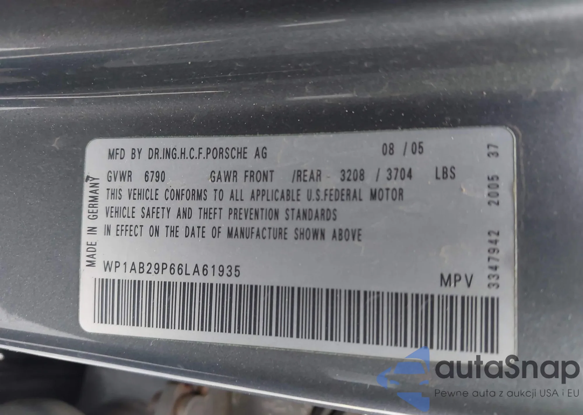 • VIN WP1AB29P66LA61935
