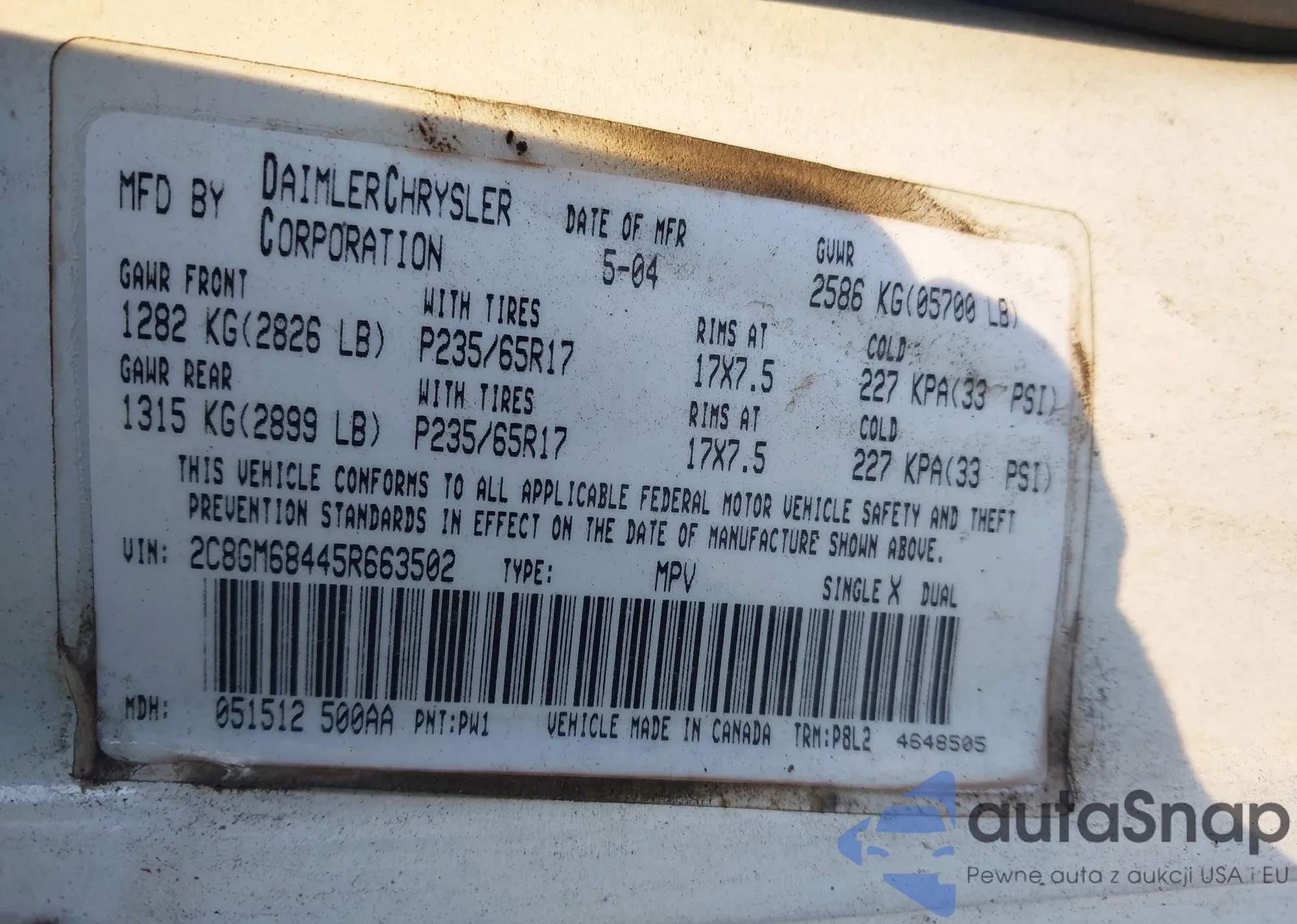 • VIN 1C3CCCAB3FN744696