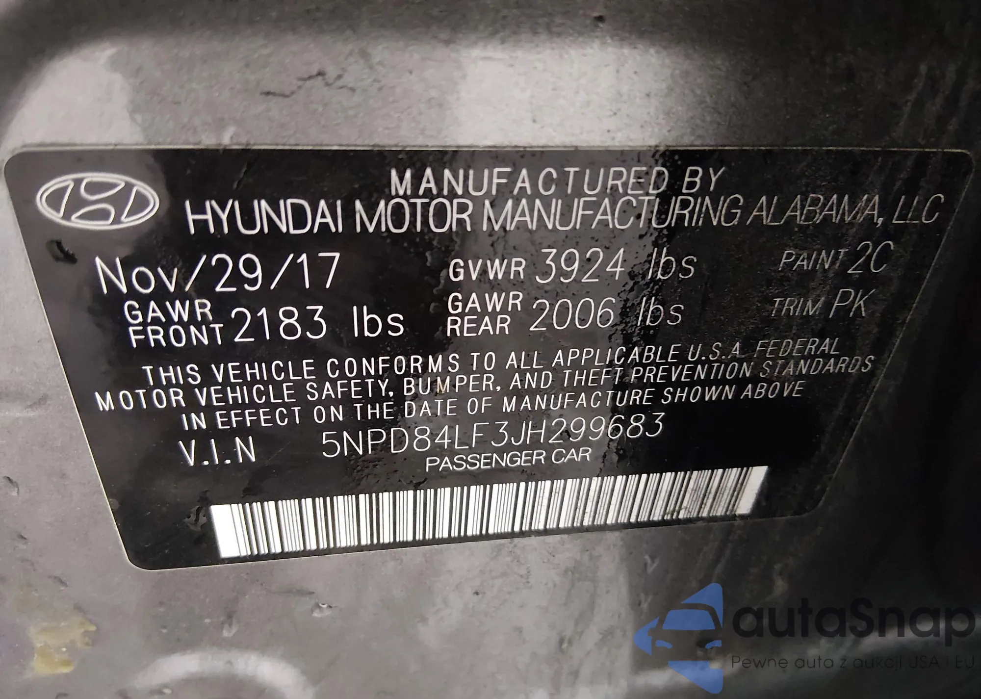 LOT: 43867234 VIN: 5NPD84LF3JH299683