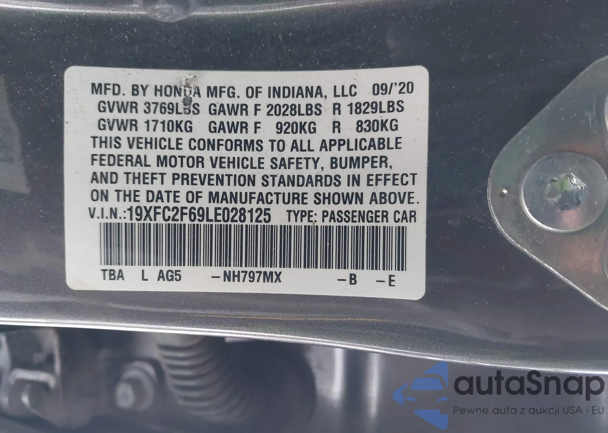• VIN 19XFC2F69LE028125