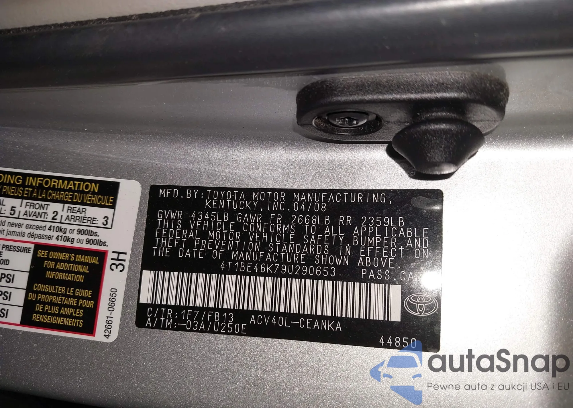 LOT: 44104982 VIN: 4T1BE46K79U290653