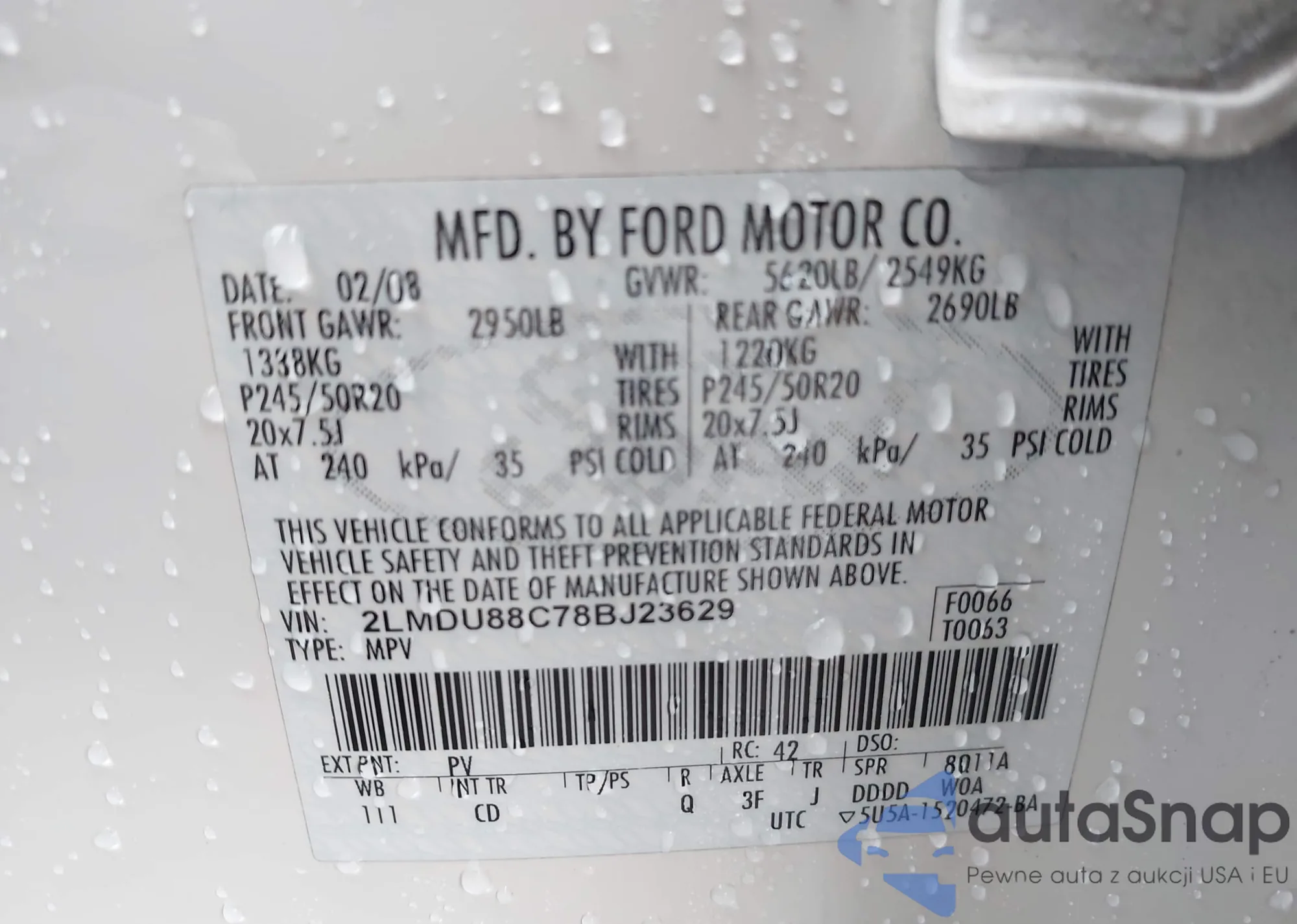 • VIN 2LMDU88C78BJ23629