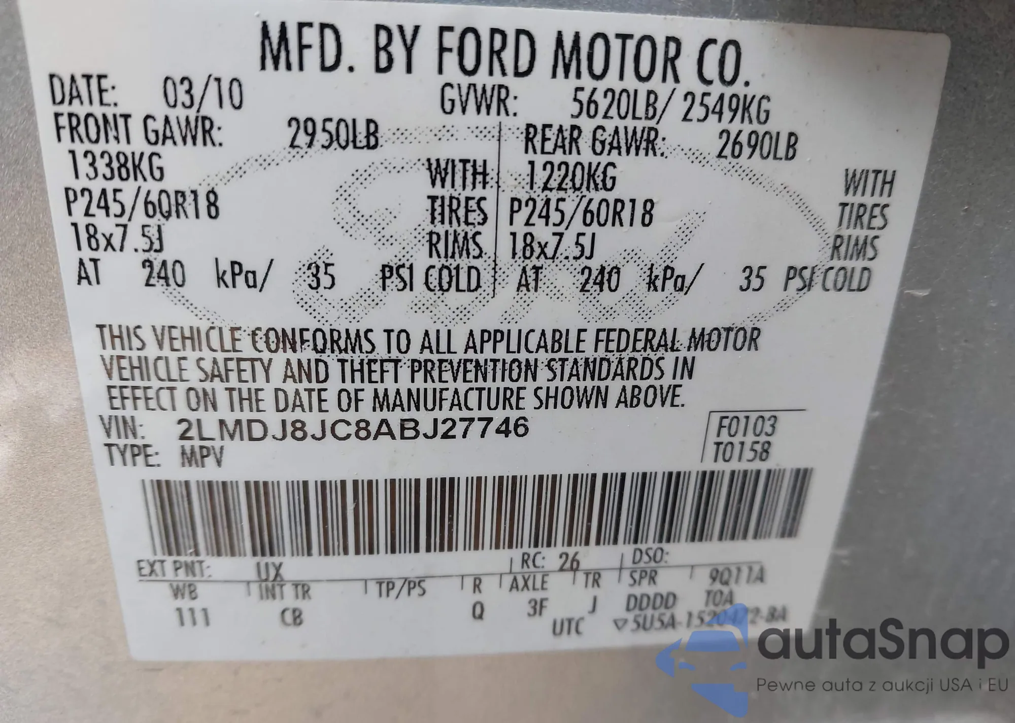 • VIN 2LMDJ8JC8ABJ27746