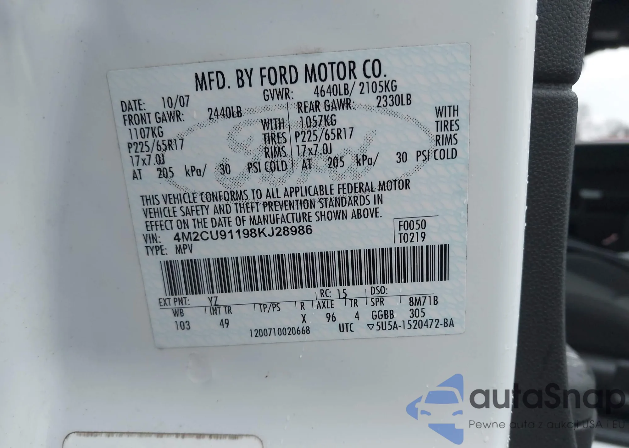 • VIN 4M2CU91198KJ28986