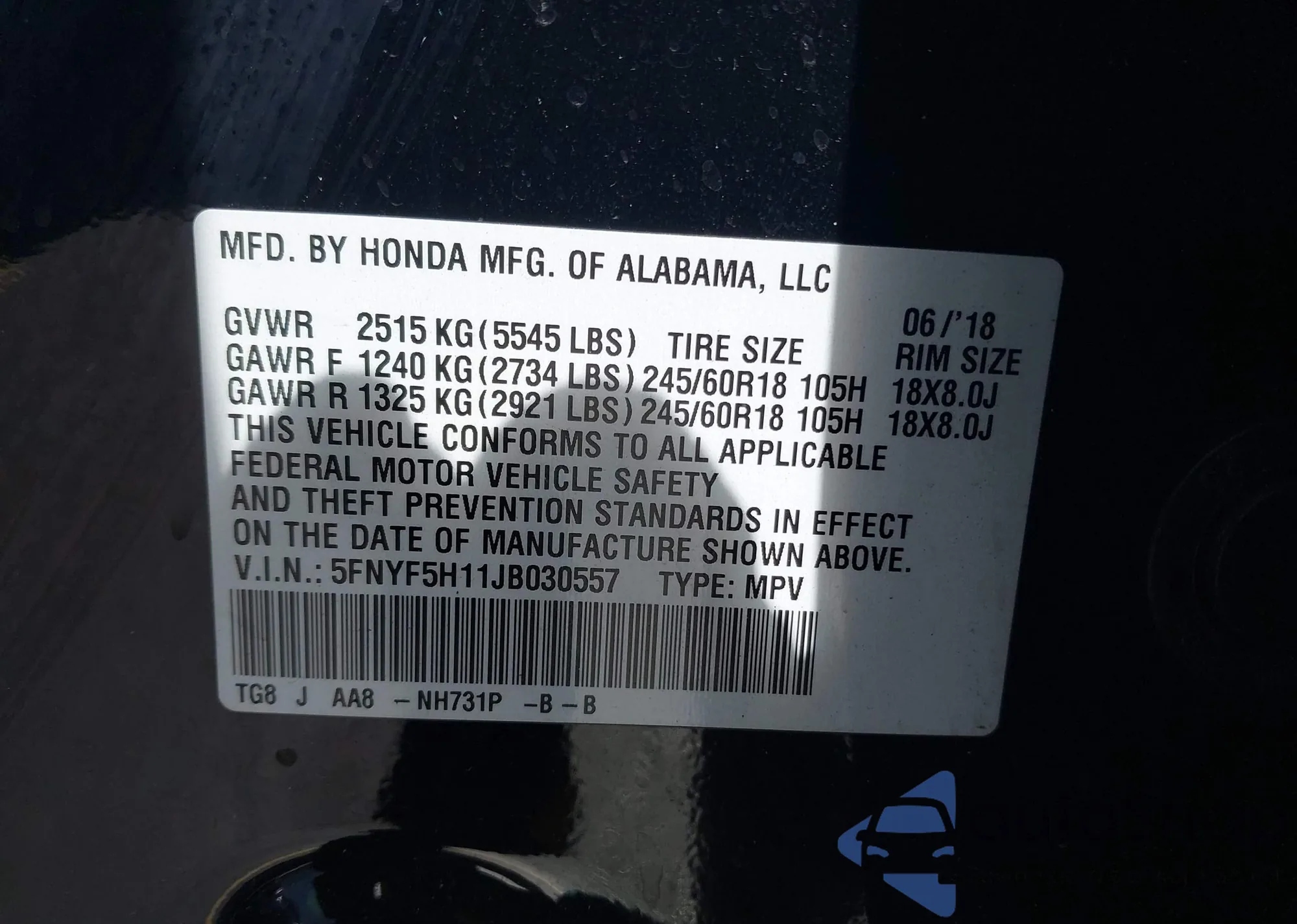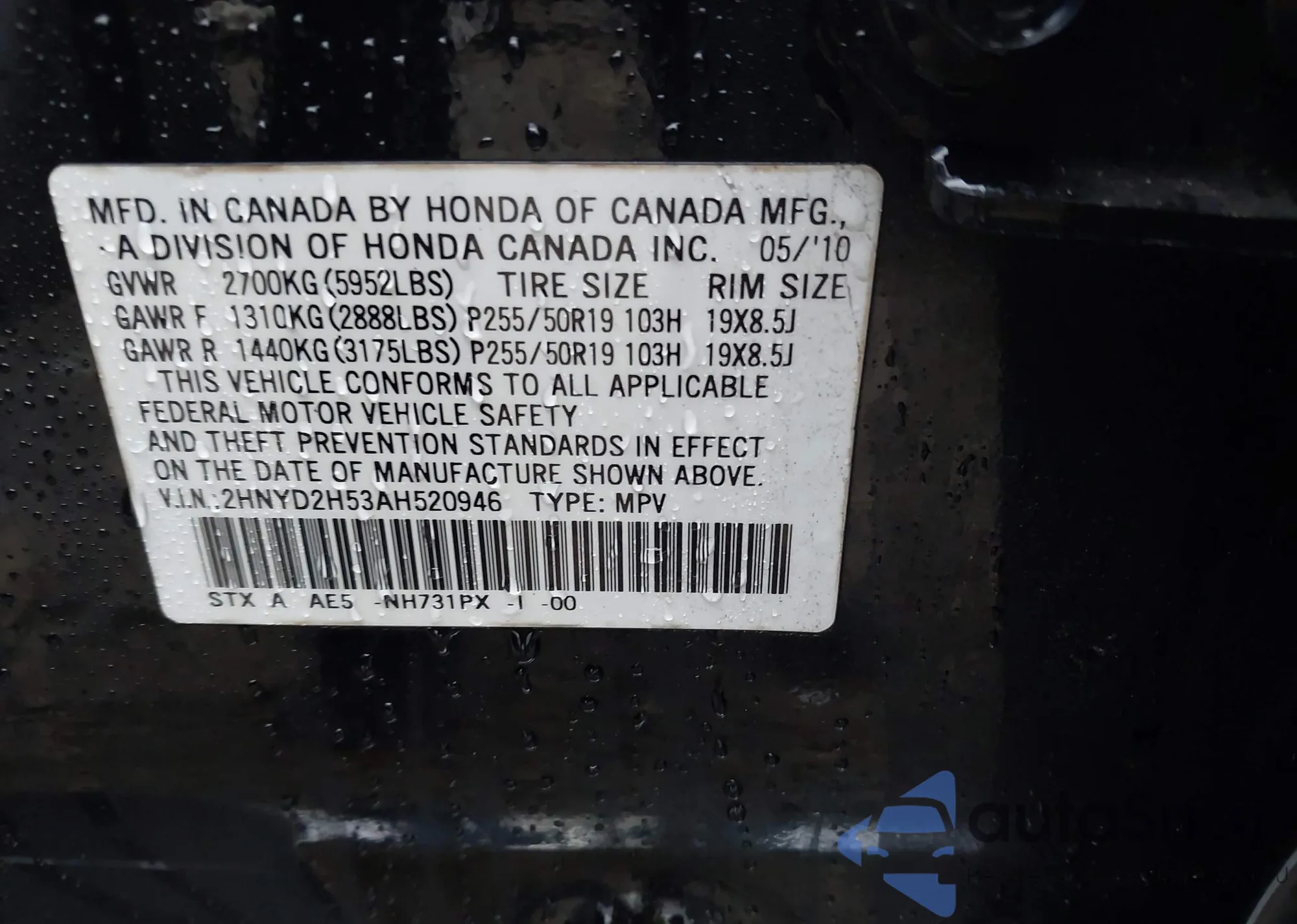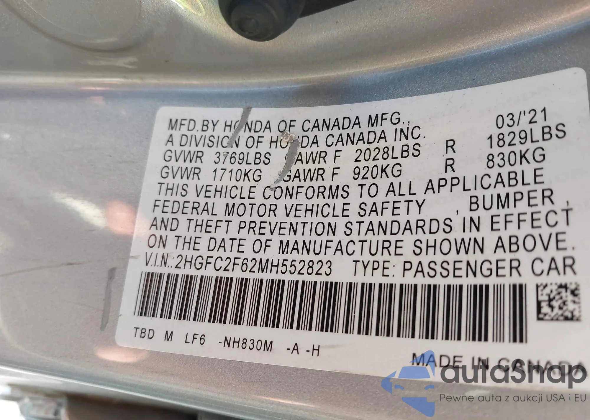 • VIN 2HGFC2F62MH552823