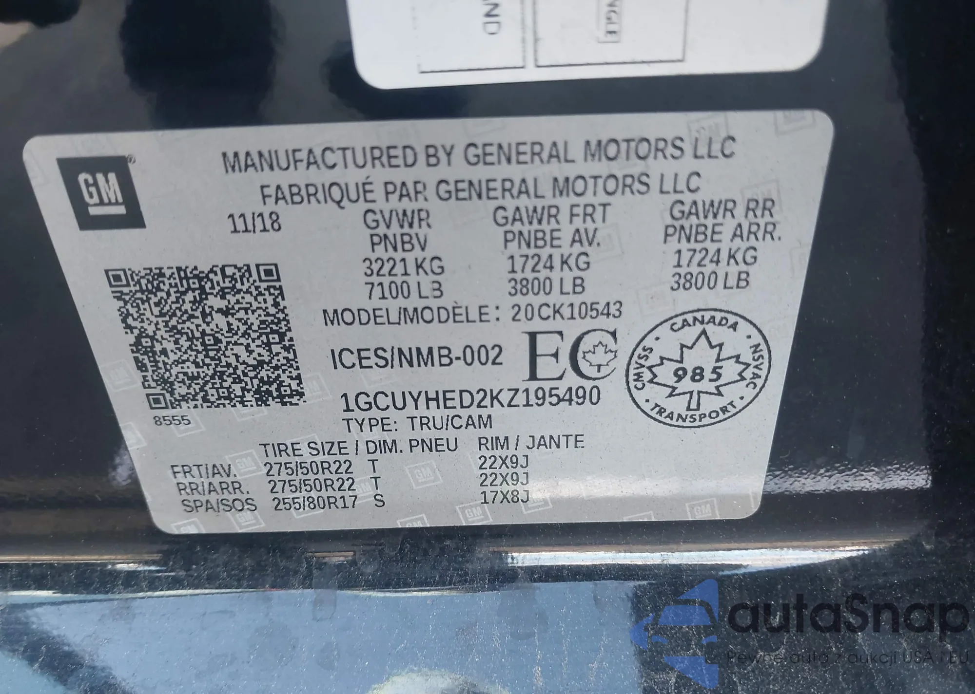 LOT: 43988199 VIN: 1GCUYHED2KZ195490