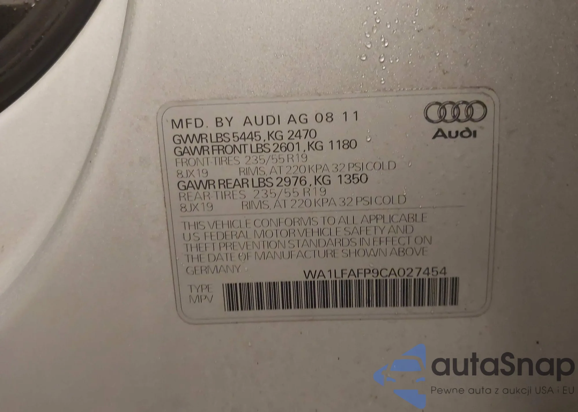 LOT: 44048159 VIN: WA1LFAFP9CA027454
