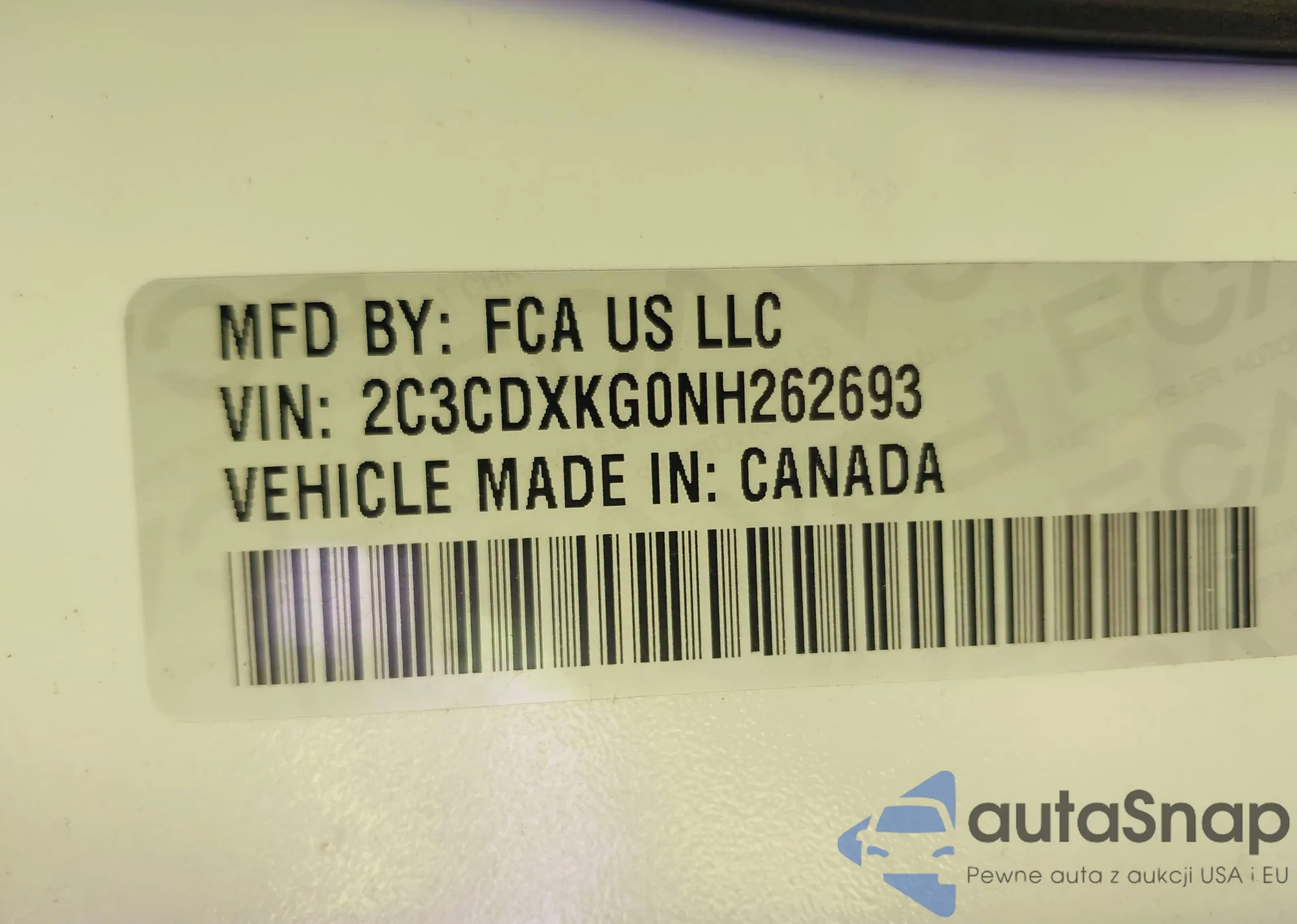 • VIN 2C3CDXKG0NH262693