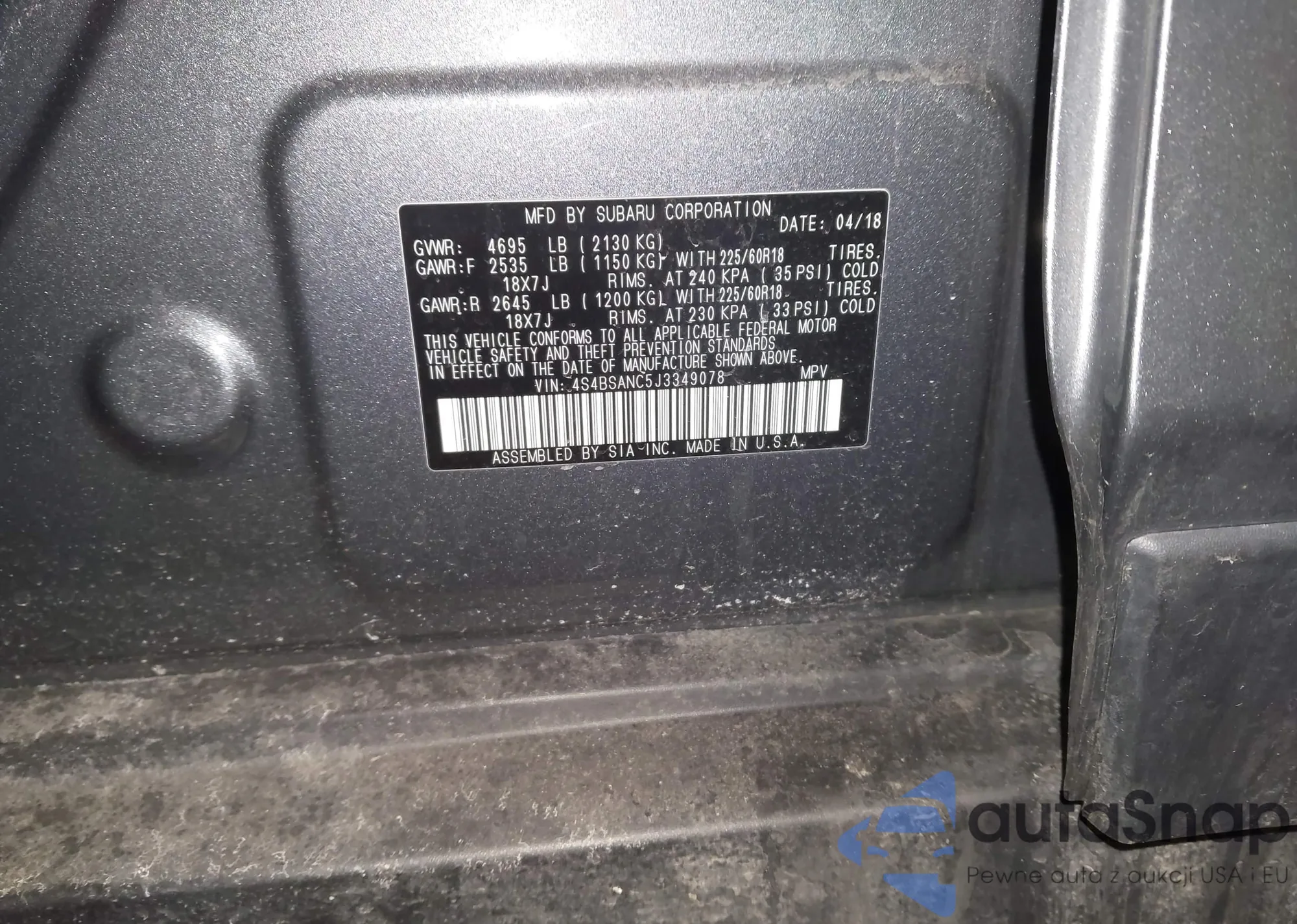 • VIN 4S4BSANC5J3349078