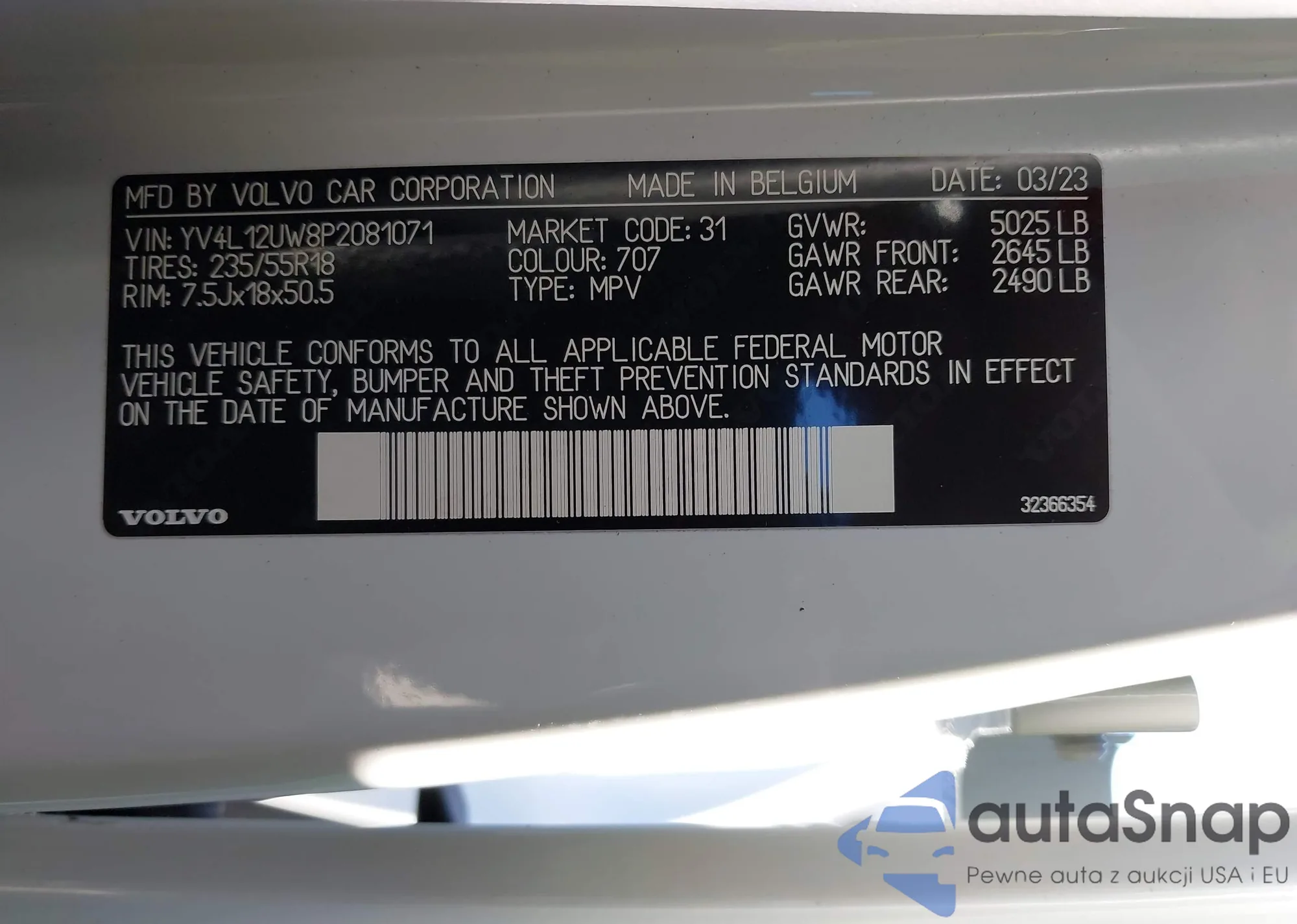 • VIN YV4L12UW8P2081071