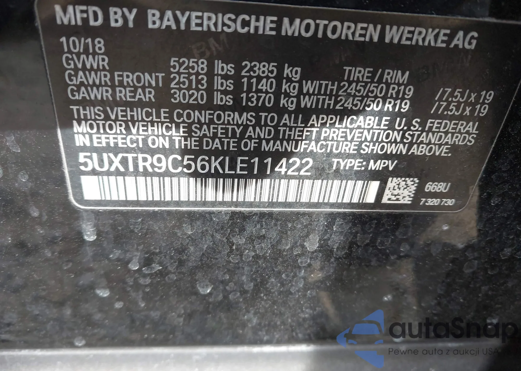 • VIN 5UXTR9C56KLE11422