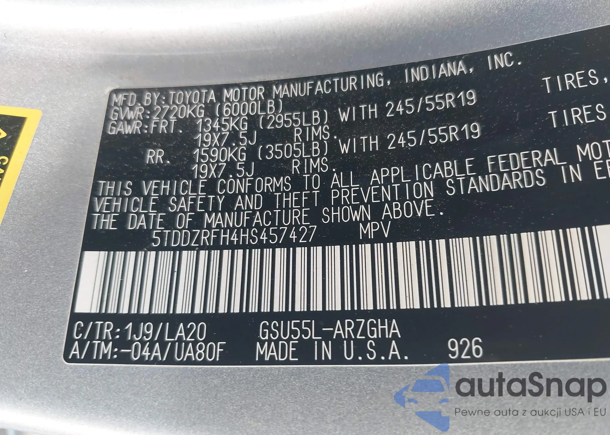 • VIN 5TDDZRFH4HS457427