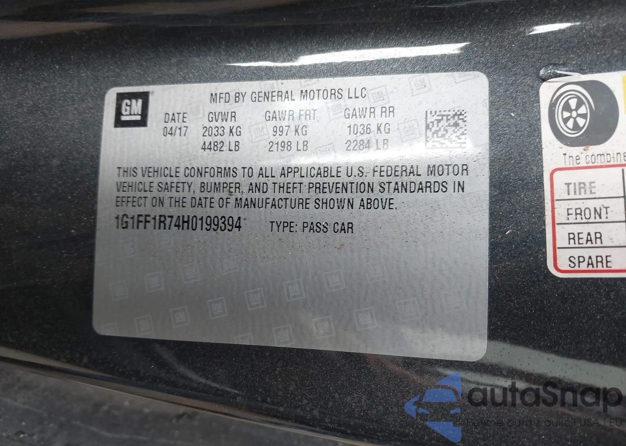 • VIN 1G1FF1R74H0199394