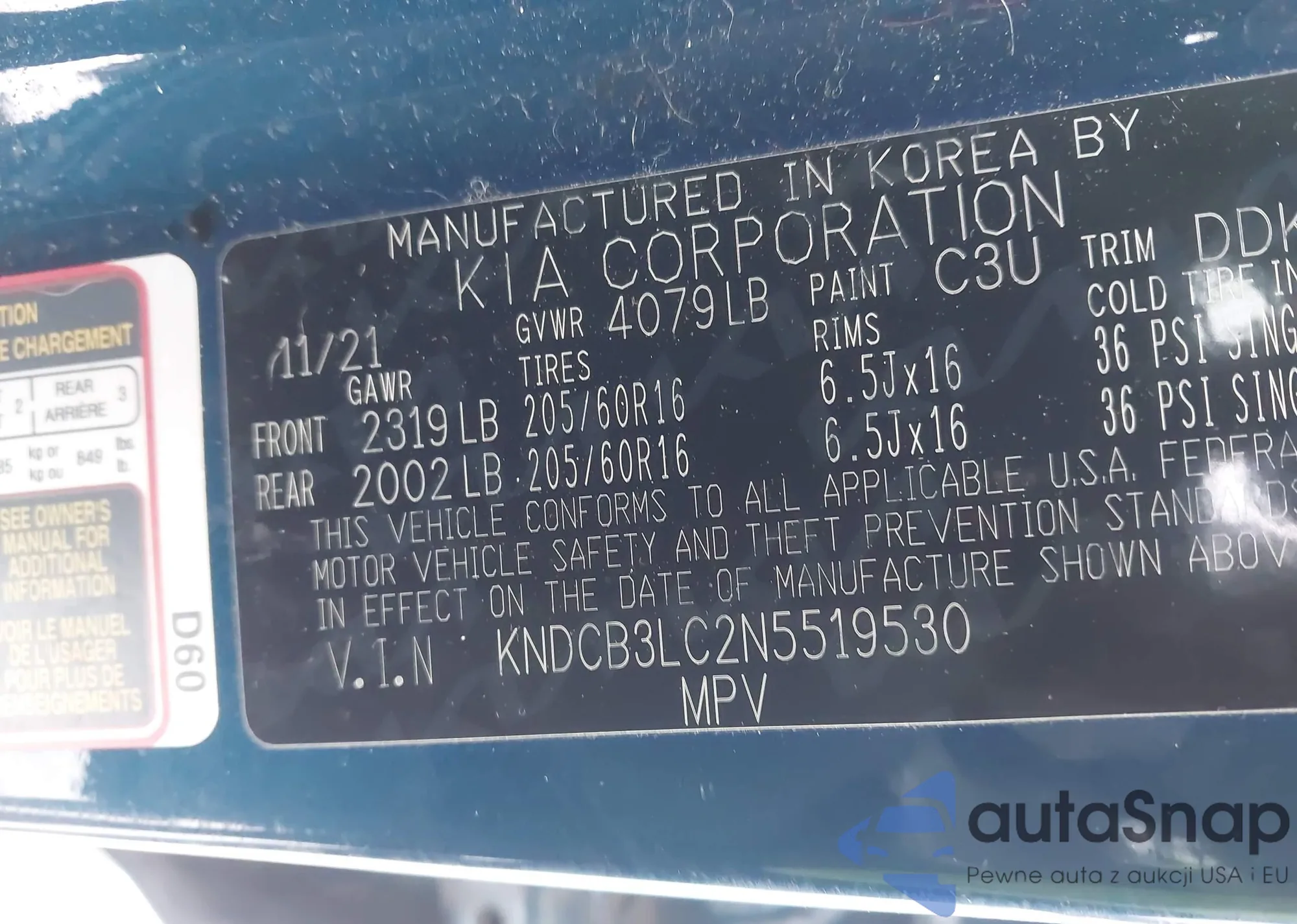 • VIN KNDCC3LC8H5064524