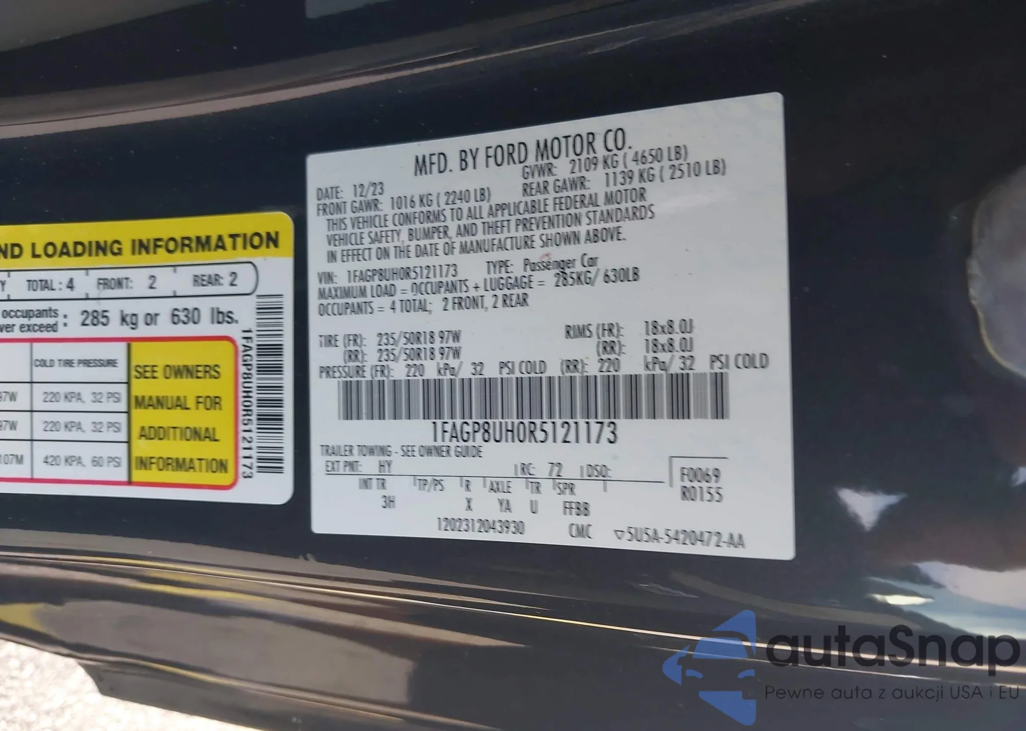 • VIN 1FAGP8UH0R5121173