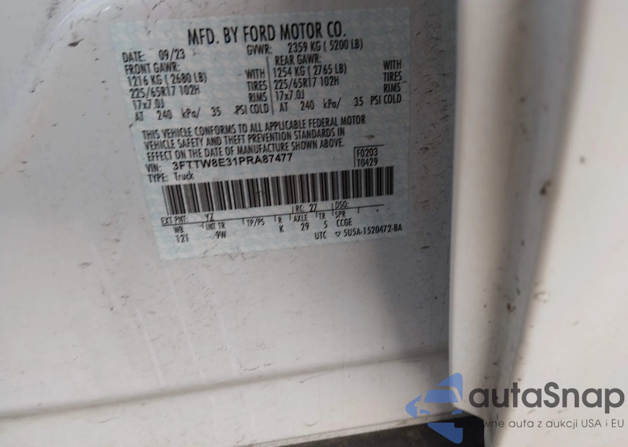LOT: 44222986 VIN: 3FTTW8E31PRA87477