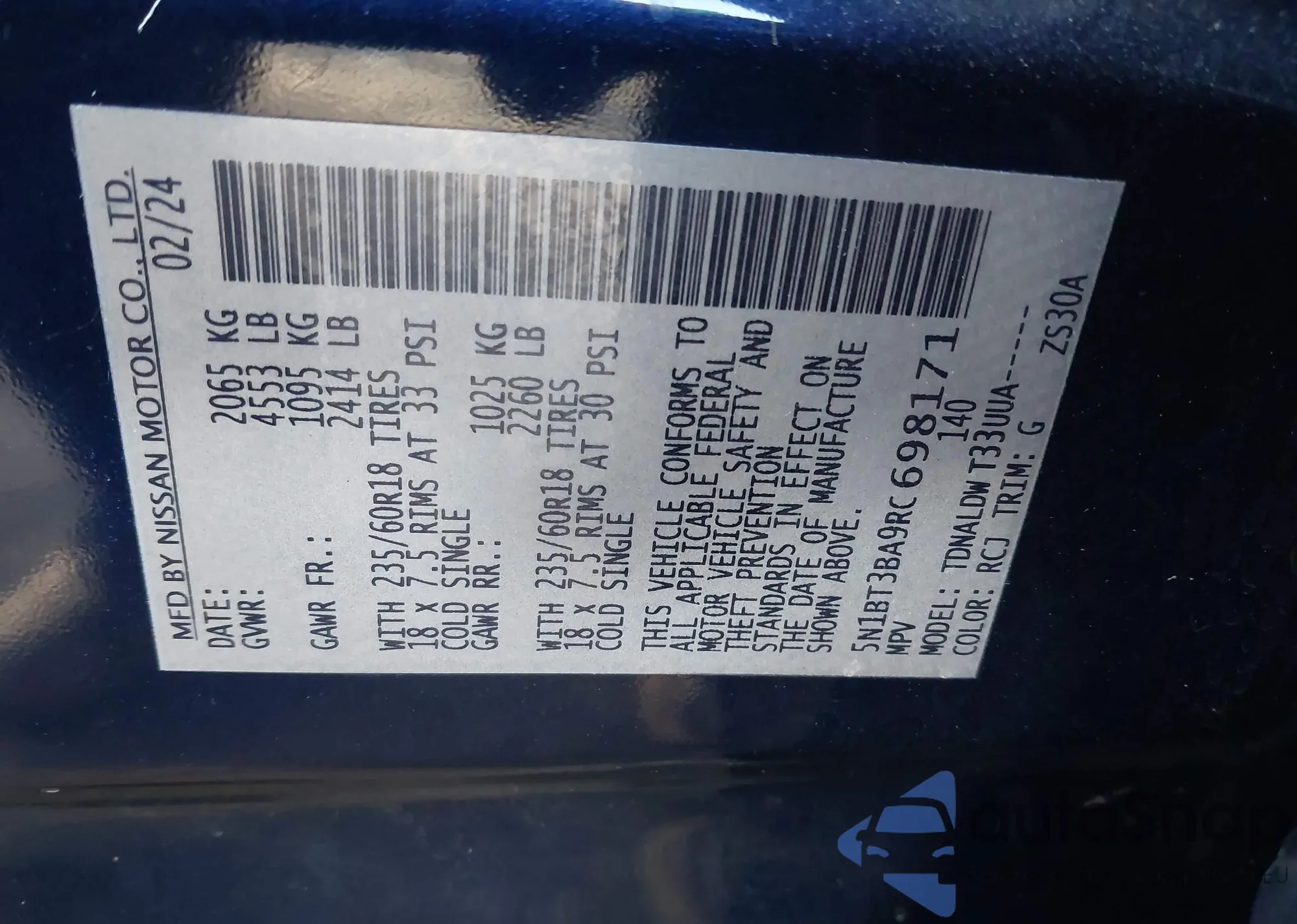 LOT: 44224721 VIN: 1N4BL4BV5SN318188