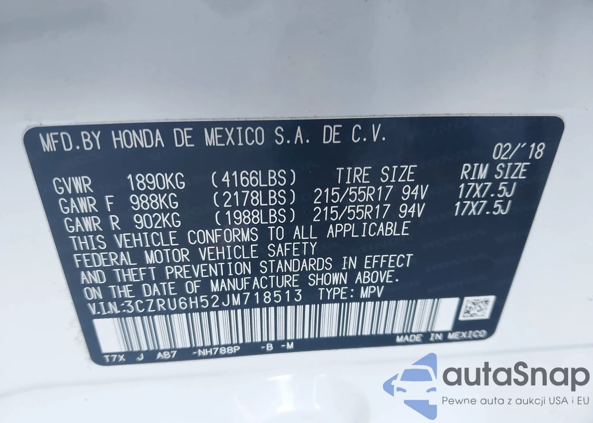 • VIN 5J6TF2H50AL015695