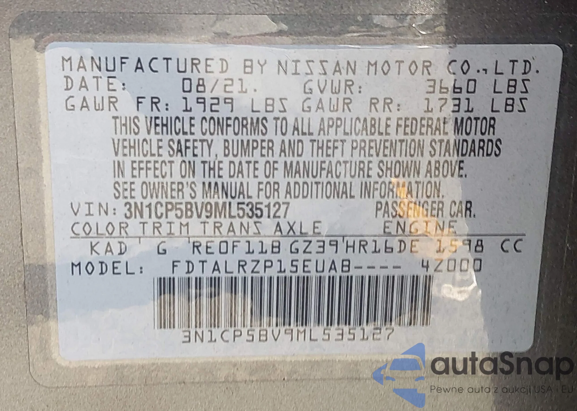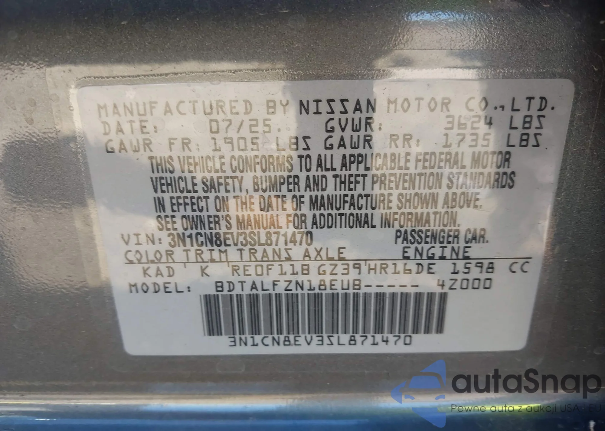 • VIN 3N1CN8EV3SL871470