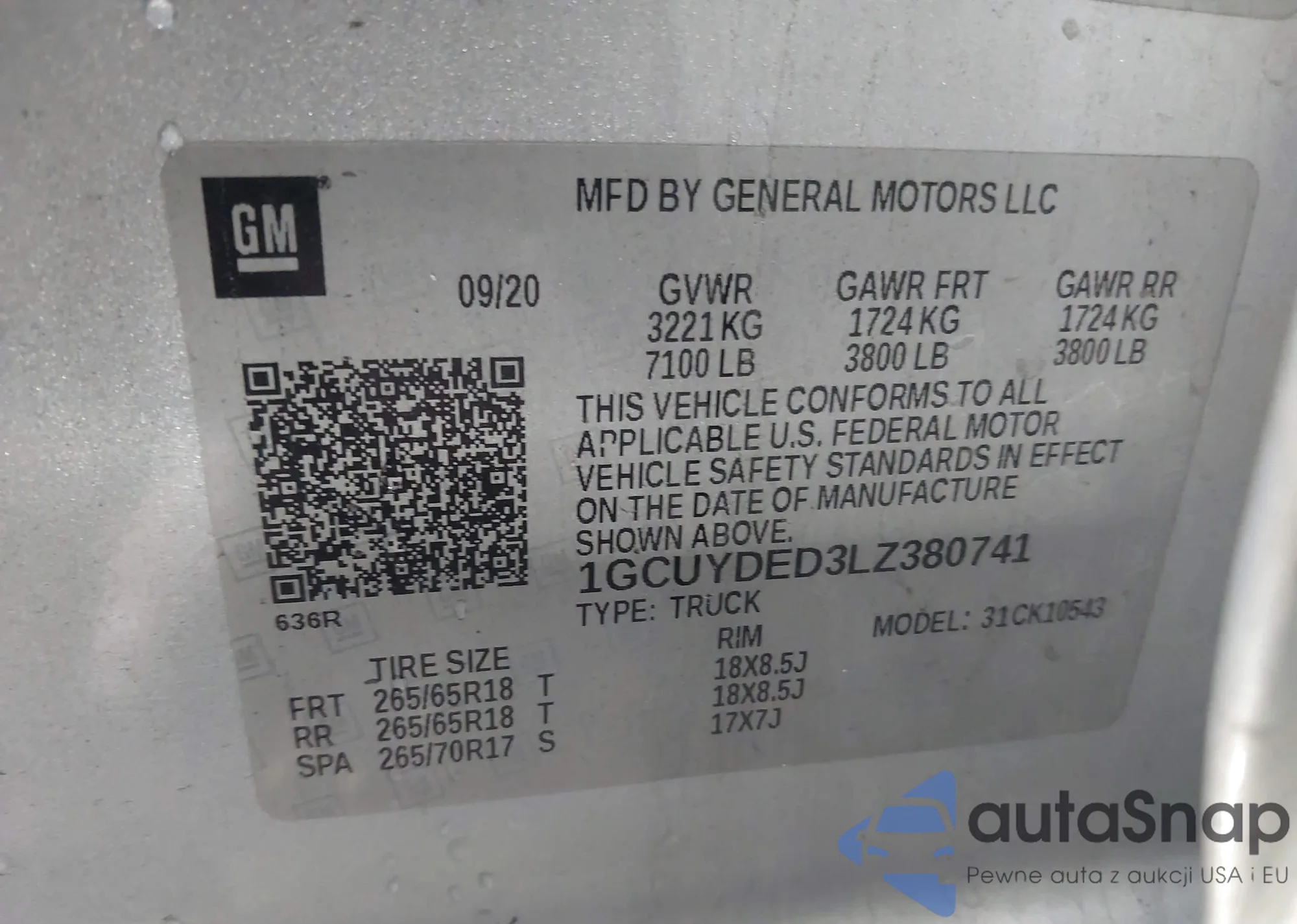 LOT: 43569870 VIN: 1GCUYDED3LZ380741